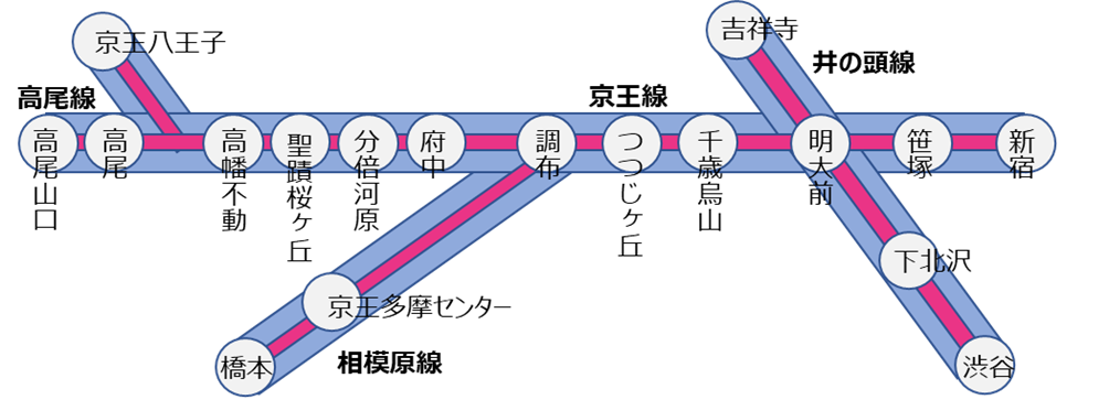 新宿(百貨店口、西口、新線口、新都心口)、笹塚、千歳烏山(北口、南口、西口)、つつじヶ丘、調布(中央口)、府中(北口、南口)、分倍河原(京王改札)、聖蹟桜ヶ丘(西口、東口、せいせき口)、高幡不動、京王八王子(中央口)、高尾(京王南口)、高尾山口、京王多摩センター(中央口)、橋本、渋谷(中央口)、下北沢(中央口)、明大前(中央口)、吉祥寺、18駅26箇所に各1台設置いたします。