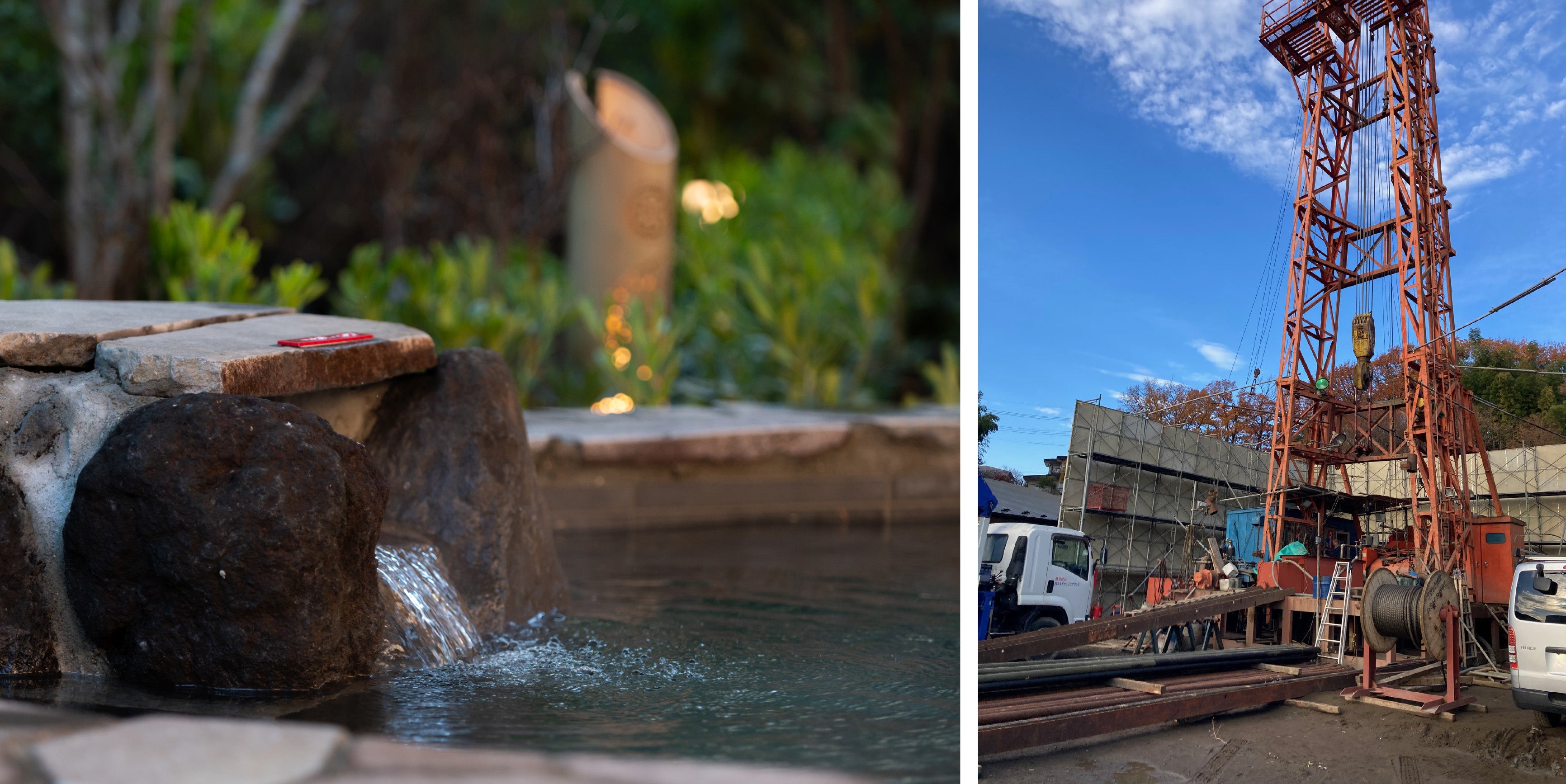 今年の秋には、敷地内で2000m掘削して汲み上げた温泉の開湯を予定しております。