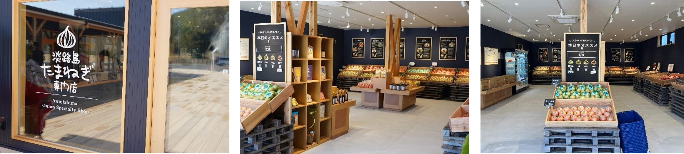 淡路島産玉ねぎを生産している農家さんの中でも品種、肥料、農薬、栽培方法等にこだわりを持ち、なおかつ美味しい玉ねぎをラインナップし、多い時期では8種類の玉ねぎを揃えています。淡路島産玉ねぎを始め、自社栽培のトマトや旬な野菜、当社が扱う「あわぢびーる」、ドレッシングなど、淡路島ブランドを体感できるセレクトショップです