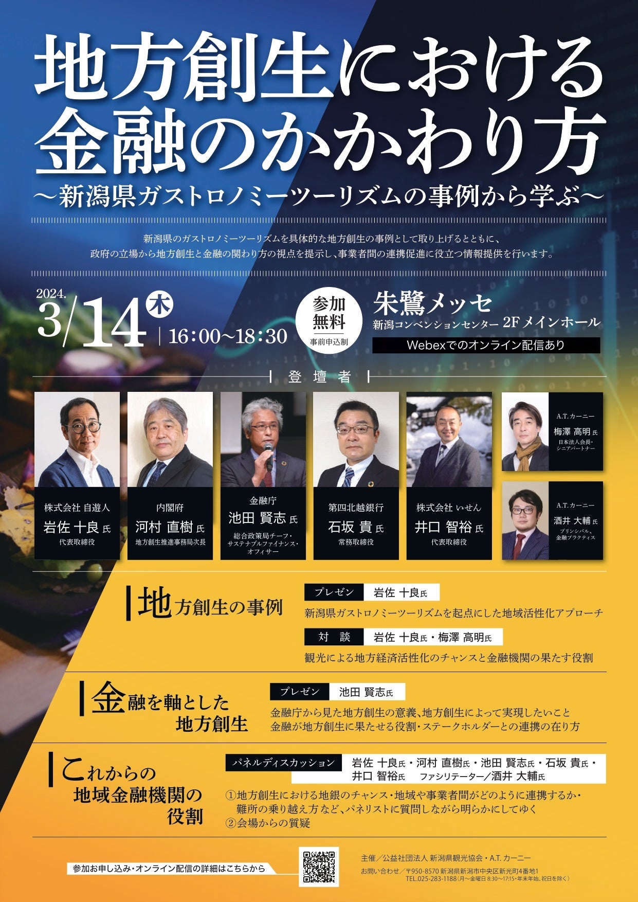 セミナー「地方創生における金融のかかわり方~新潟県ガストロノミーツーリズムの事例から学ぶ~」詳細