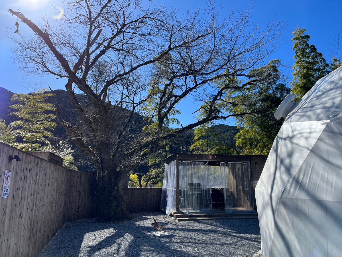 全13棟、5種類の客室タイプから自分の滞在スタイルに合った客室を選ぶことができる、『リバーサイドグランピング猪名川』。その中でも桜を見たい方に一番おすすめなのが、2棟限定のアクアドーム【sakura】のお部屋です。