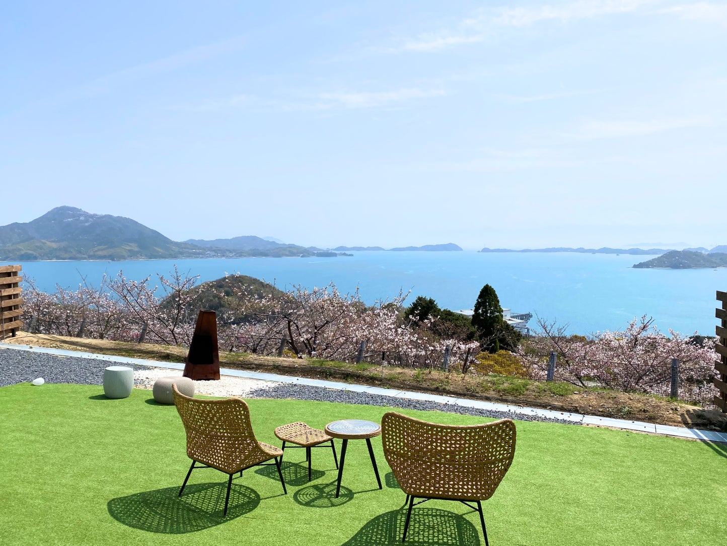 シトラスパーク瀬戸田内にある『LEMON FARM GLAMPING』は、桜の名所として島民からも長年愛されているスポットです。約800本の満開の桜と青い瀬戸内海のコントラストがとても幻想的で、非日常を味わえるグランピングとの相性も抜群!