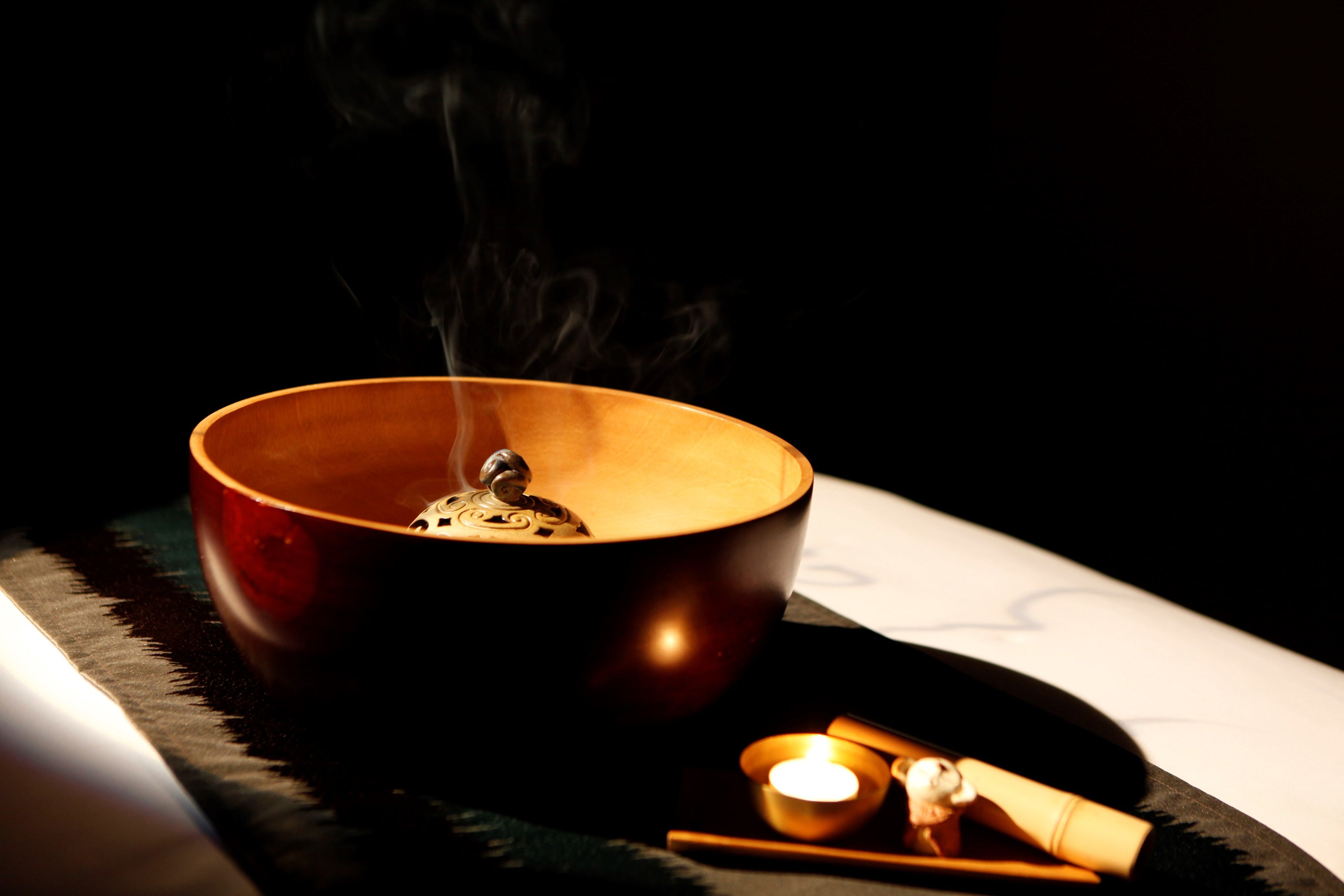 mahora Spaならではのリチュアルや吉奈の霊泉を用いた温シンキングボールで、呼吸や音などの感覚に意識を向けていただくことで、今このひとときに集中するマインドフルネスへと誘います。