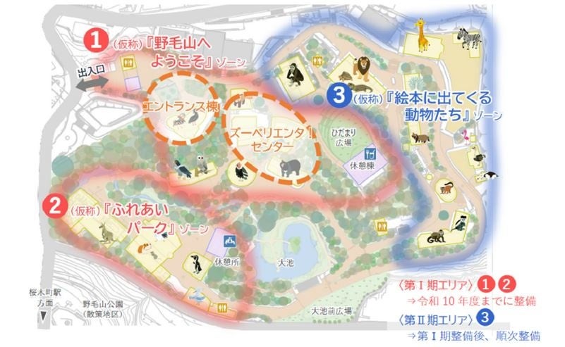 動物種の特性や展示のテーマ性等に応じて動物園内を3つのゾーンに分け、順次リニューアルを進めていきます。