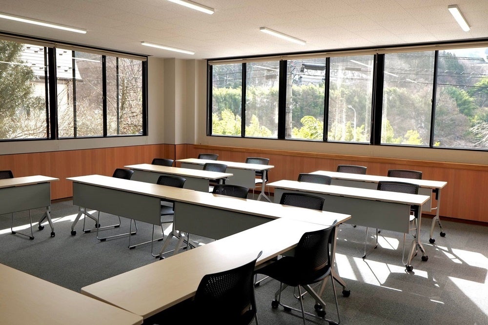 レンタルスペース「昼神空間」は、南信州最大の温泉郷昼神温泉の入り口に位置する多目的レンタルスペースで、温泉宿から近く長期滞在での利用も可能です。テレワーク、グループワークの場所として、商談、展示、販売、イベント、セミナー会場として、ほかにも本を読んだり、動画を見たりと様々な用途に利用できます。