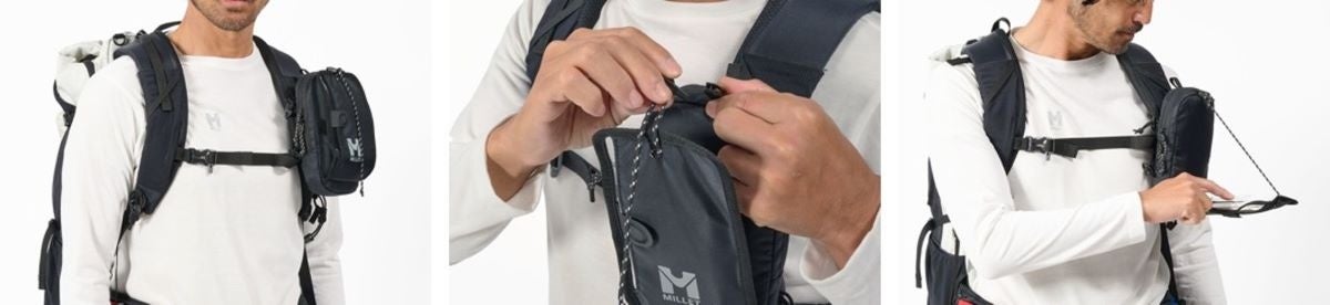 ショルダー部分のポケットも行動中の出し入れに活躍
