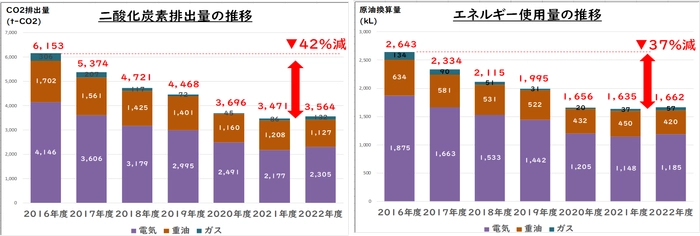 ・CO2排出量42%削減、エネルギー使用量37%削減