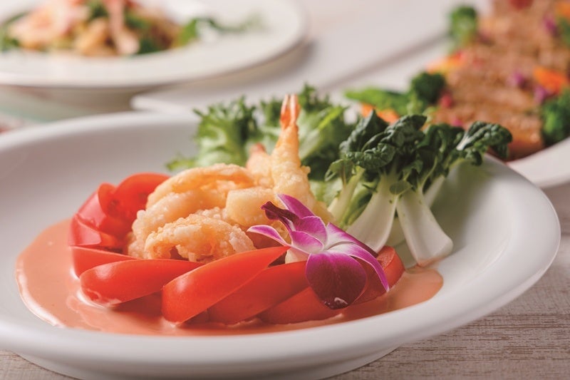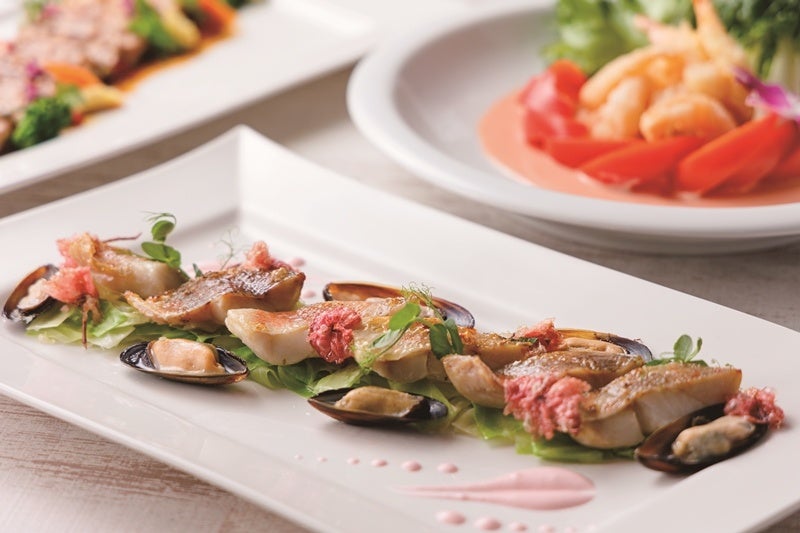スカイレストランの春を楽しむブッフェでは、「筍のロワイヤル」や「赤魚とムール貝 桜の白ワインソース春キャベツのエチュベ」そして、シェフオススメ「エビフリッター チリマヨネーズソース」などをご用意します。