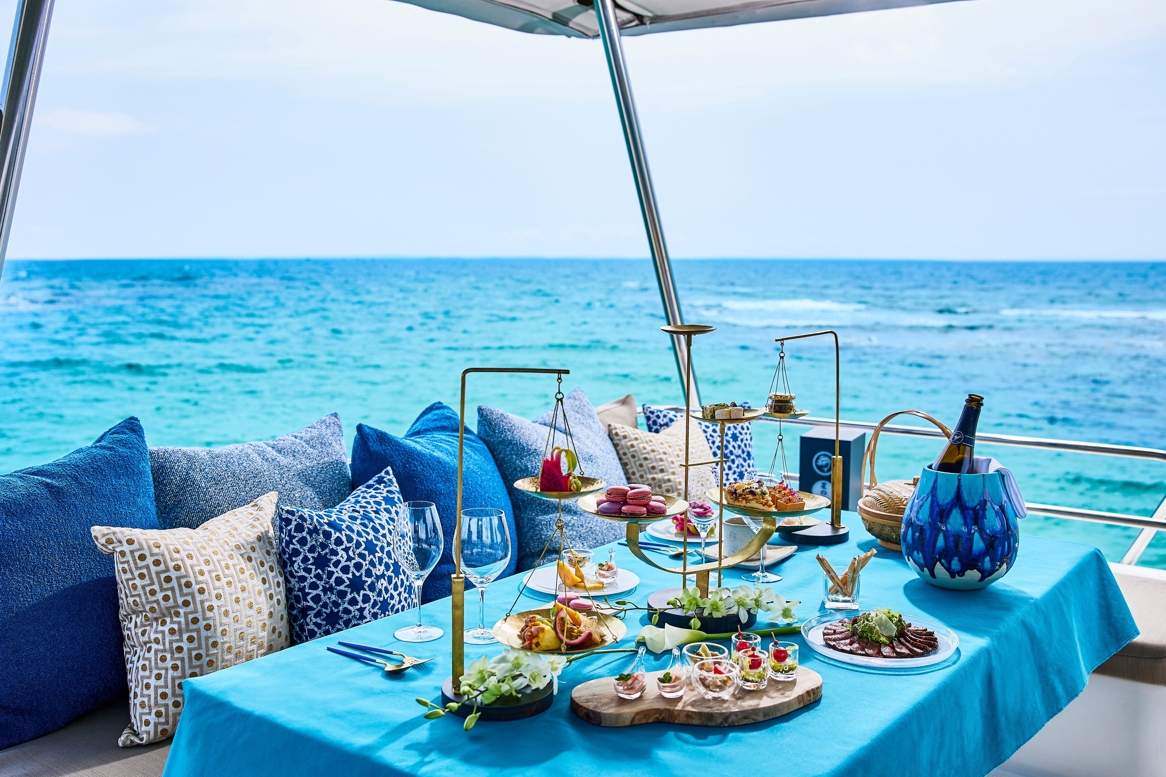 含まれるもの:カタマランクルーザーでのプライベートクルーズ、専属コンシェルジュのサービス、クラブラウンジで提供する料理、ドリンク