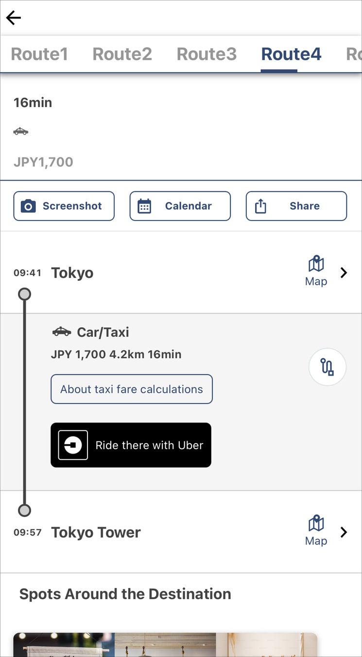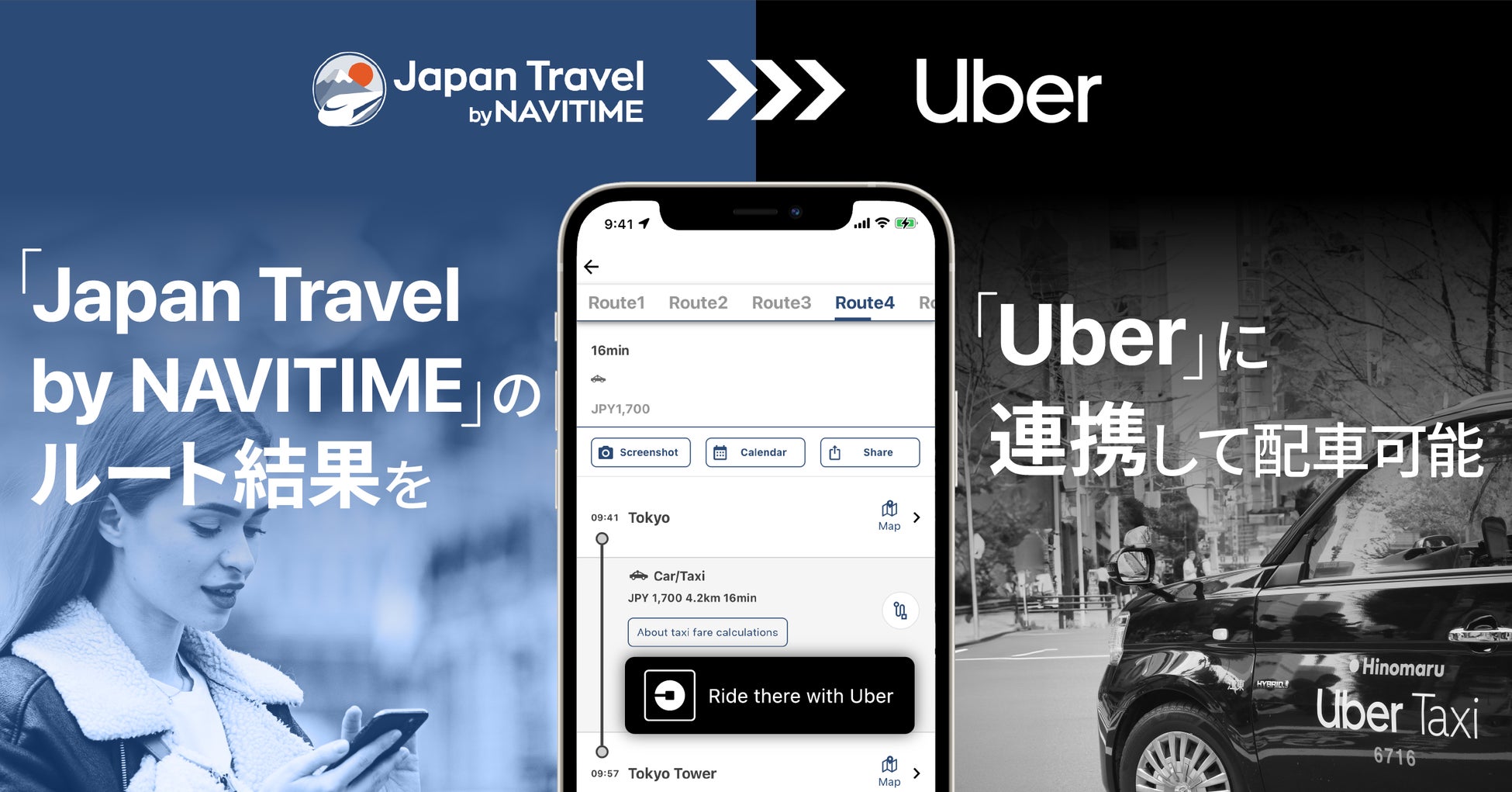 今回の連携により、『Japan Travel by NAVITIME』のルート結果から、「Uber」に対応したタクシーの配車ができるようになります。