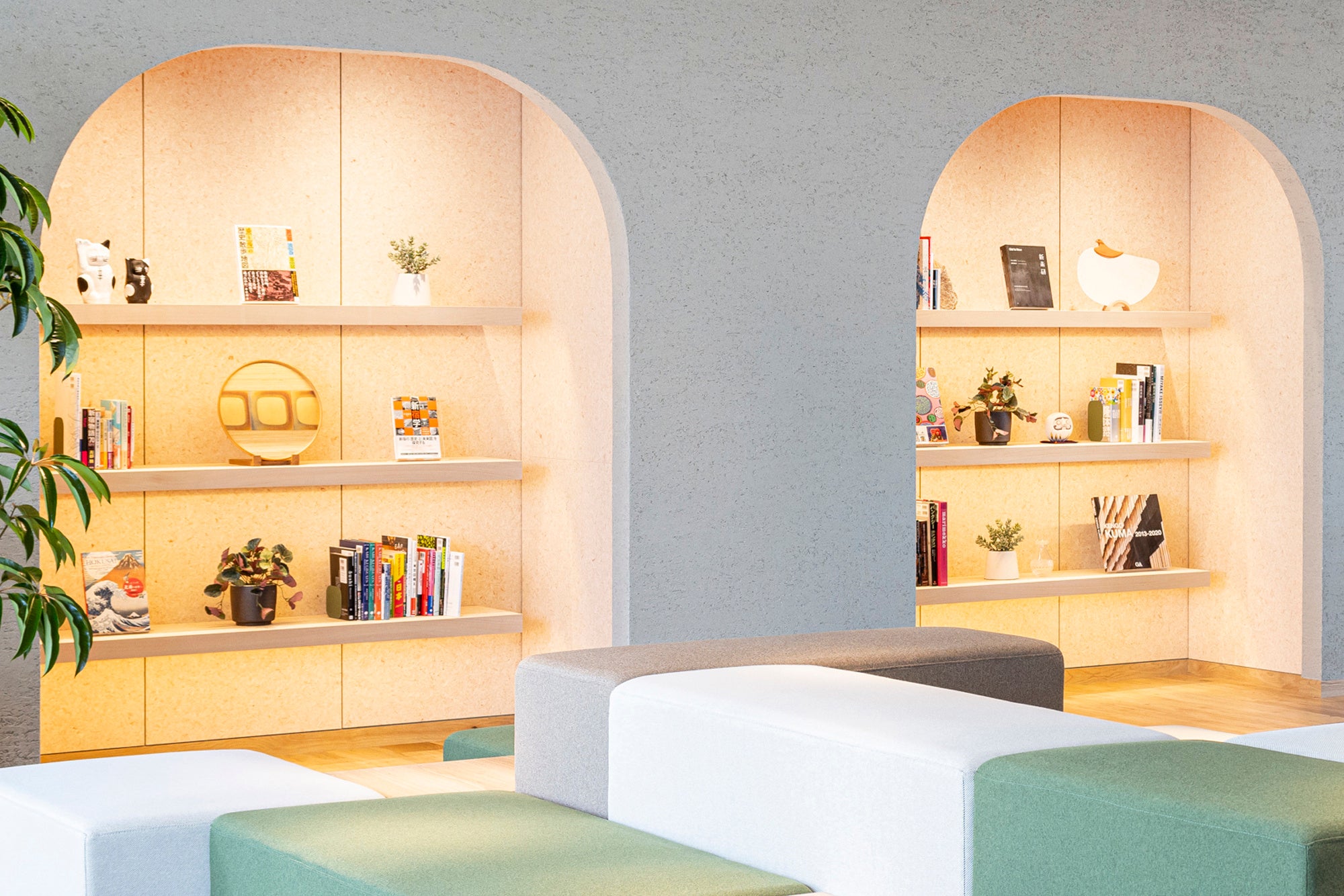 また、「ライブラリー」ゾーンには、雛人形などの節句人形に使われる木目込の技術と西陣織を掛け合わせて作られている江戸だるまをはじめ、江戸切子やまねきねこなどの日本の伝統工芸品で知的好奇心をくすぐるアートを配置し、様々なアートブックと一緒にお楽しみいただけます。