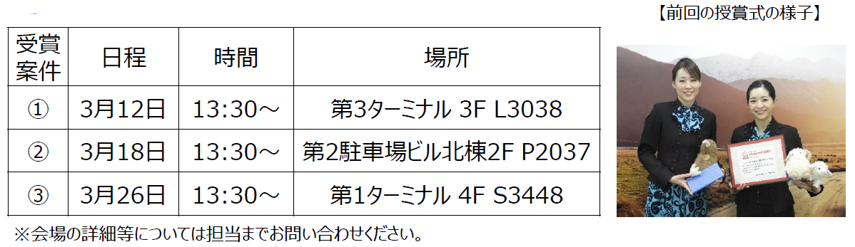 乗継に際して様々な制約がある中、手続きのご案内はもとより、お客様の不安を解消するための心配りが評価され、受賞に至りました。