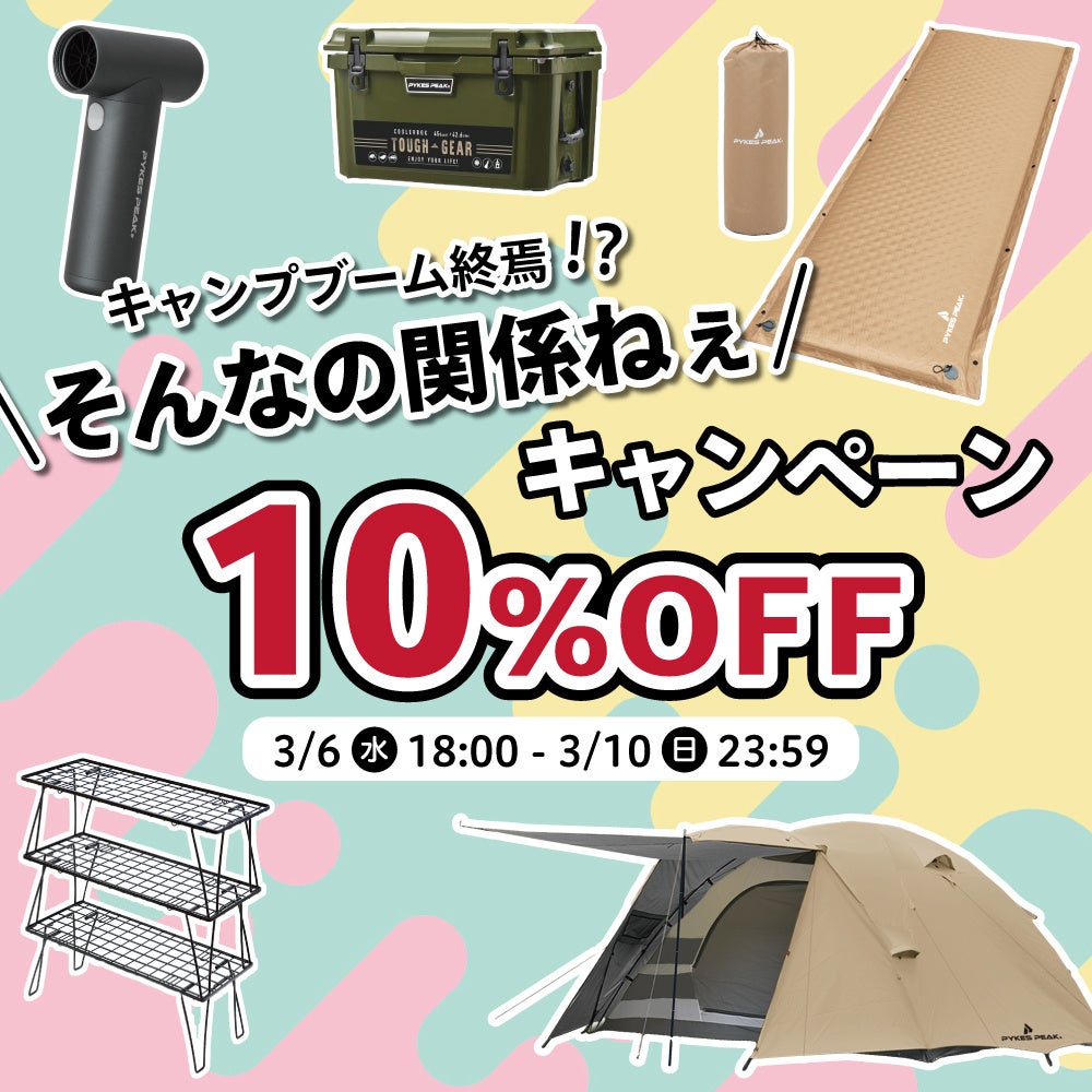 キャンパーの皆様のあったらいいな!を形にした商品の数々が10%OFFです。
