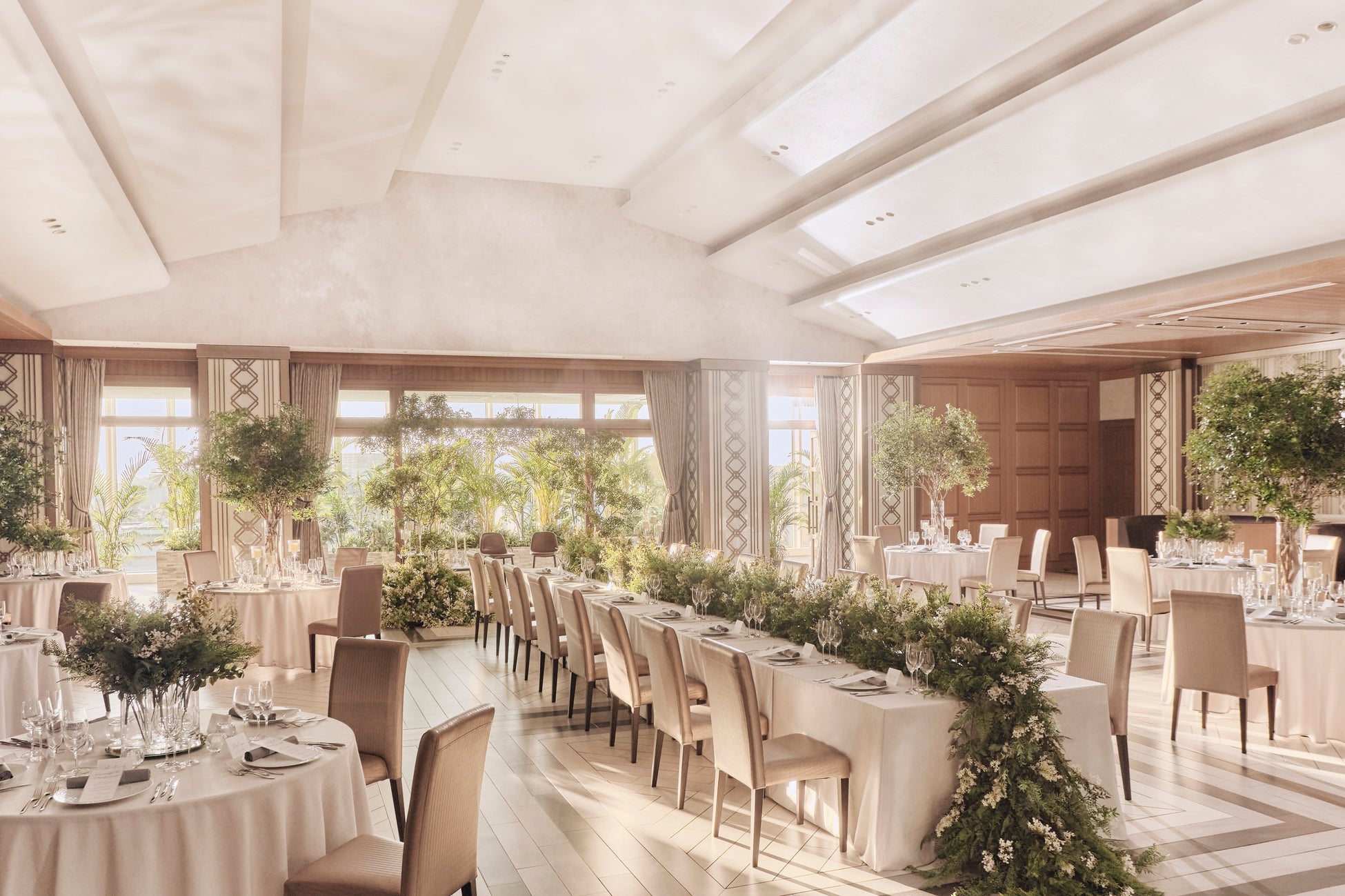 博多駅0分の立地にあるとは想像できない大空間、博多の街を見渡す景色、陽光溢れる開放的な空間を継承、「ザ ストリングス」ブランドの伝統と革新が調和して生み出される新たな世界観が、新郎新婦様とゲストの皆様を非日常世界へと誘います。