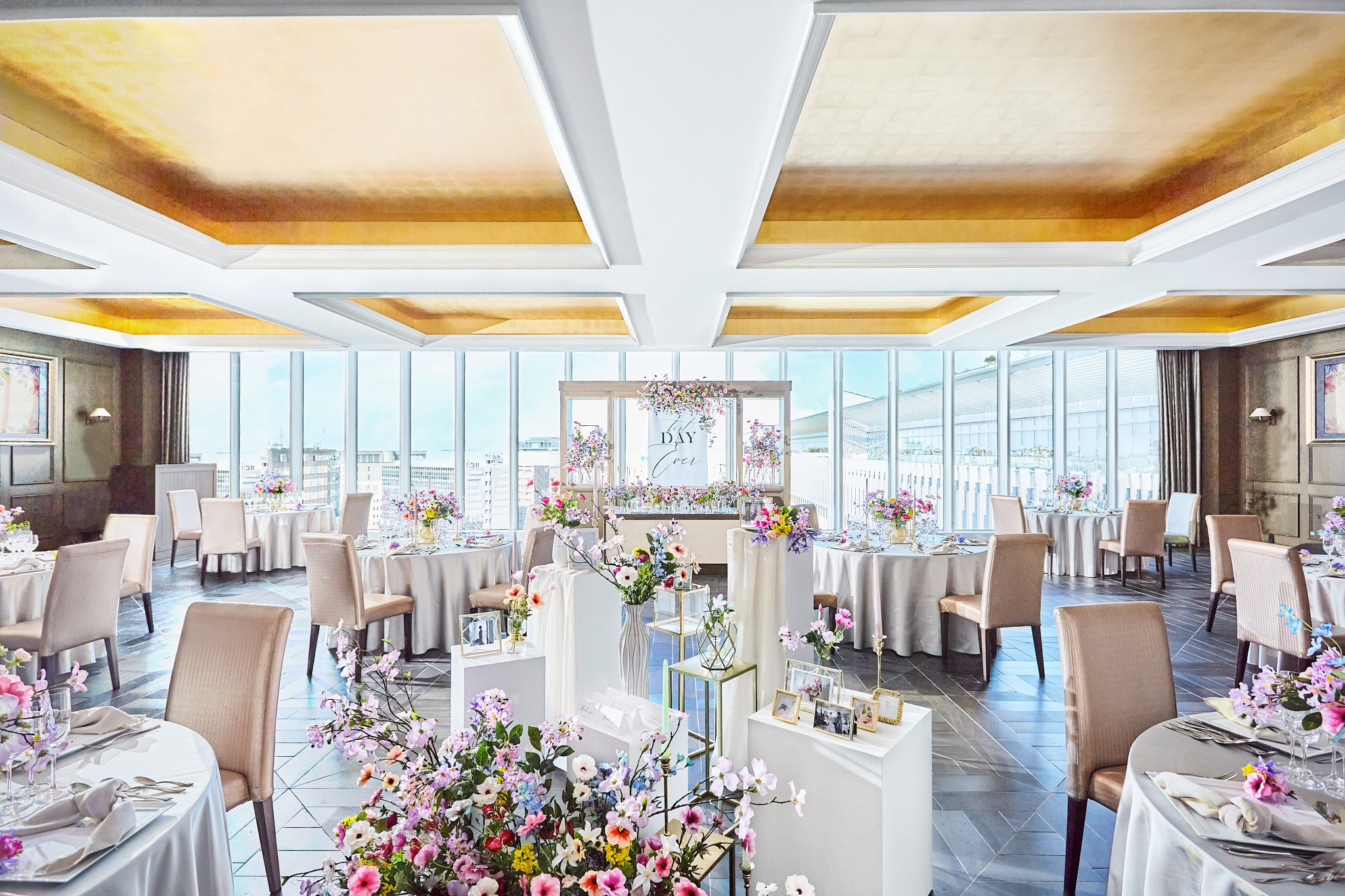博多駅0分の立地にあるとは想像できない大空間、博多の街を見渡す景色、陽光溢れる開放的な空間を継承、「ザ ストリングス」ブランドの伝統と革新が調和して生み出される新たな世界観が、新郎新婦様とゲストの皆様を非日常世界へと誘います。