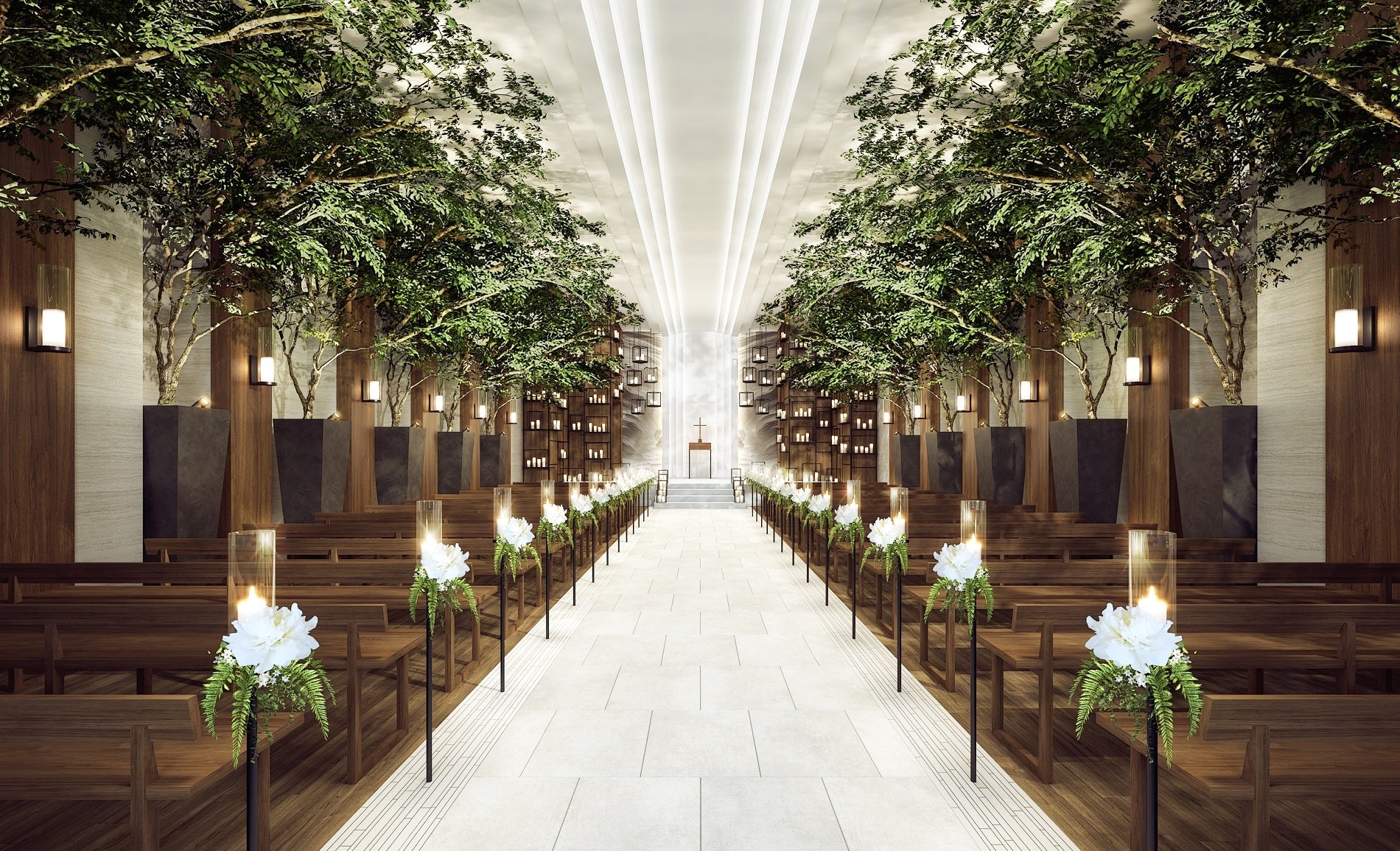 チャペルホール (音楽堂) 「Majestic」扉が開くと、目に映るのは「非日常的な世界」優しく揺らめくキャンドルに幸せの願いを込めセレモニーでの一瞬一瞬に、おふたりのストーリーを奏でます