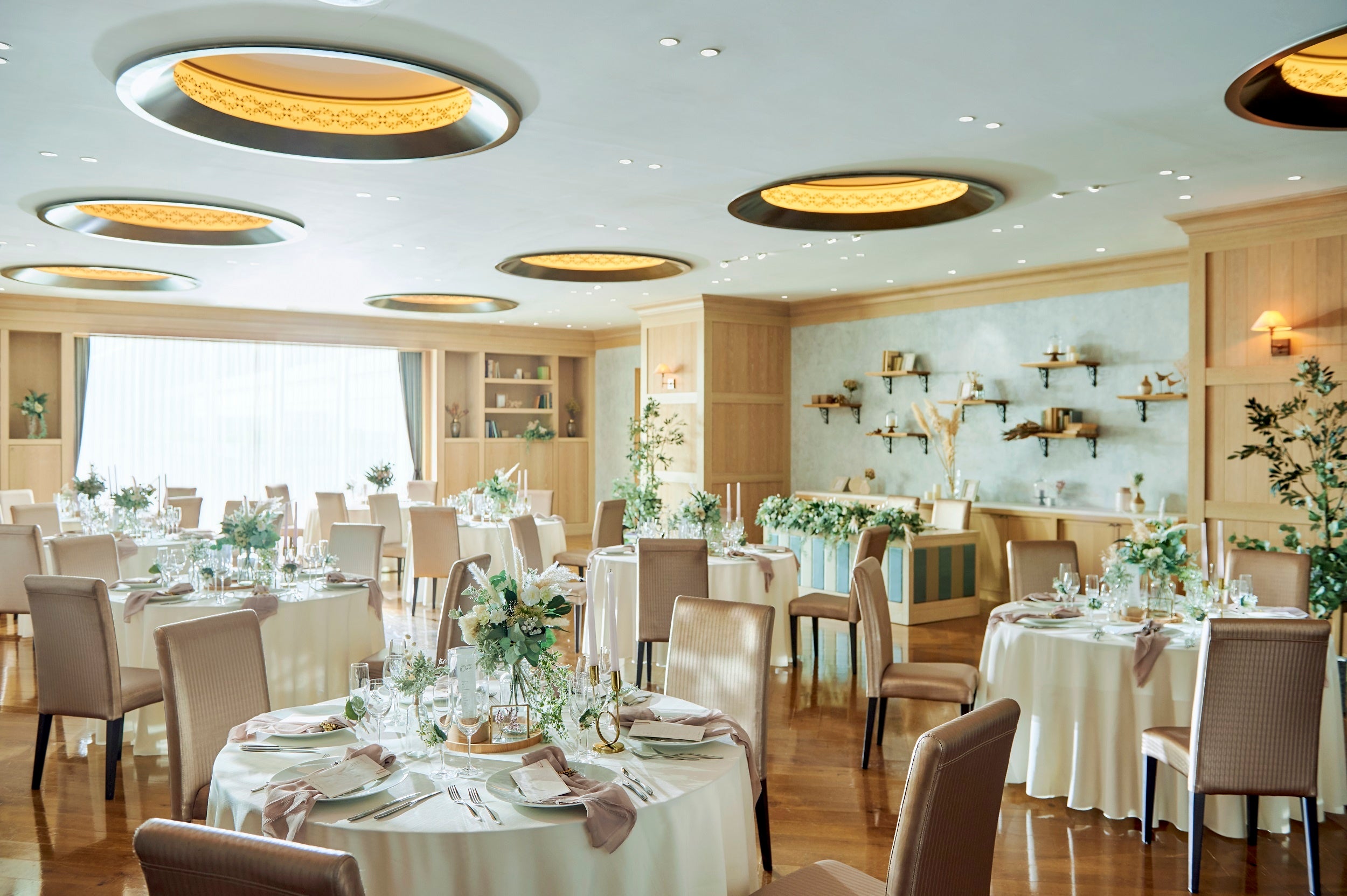 「Maestro_ マエストロ」「Ribalta _ リバルタ」で、 美食と寛ぎに感謝の想いを込めてお届けするおふたりらしいご披露宴会場をご用意。