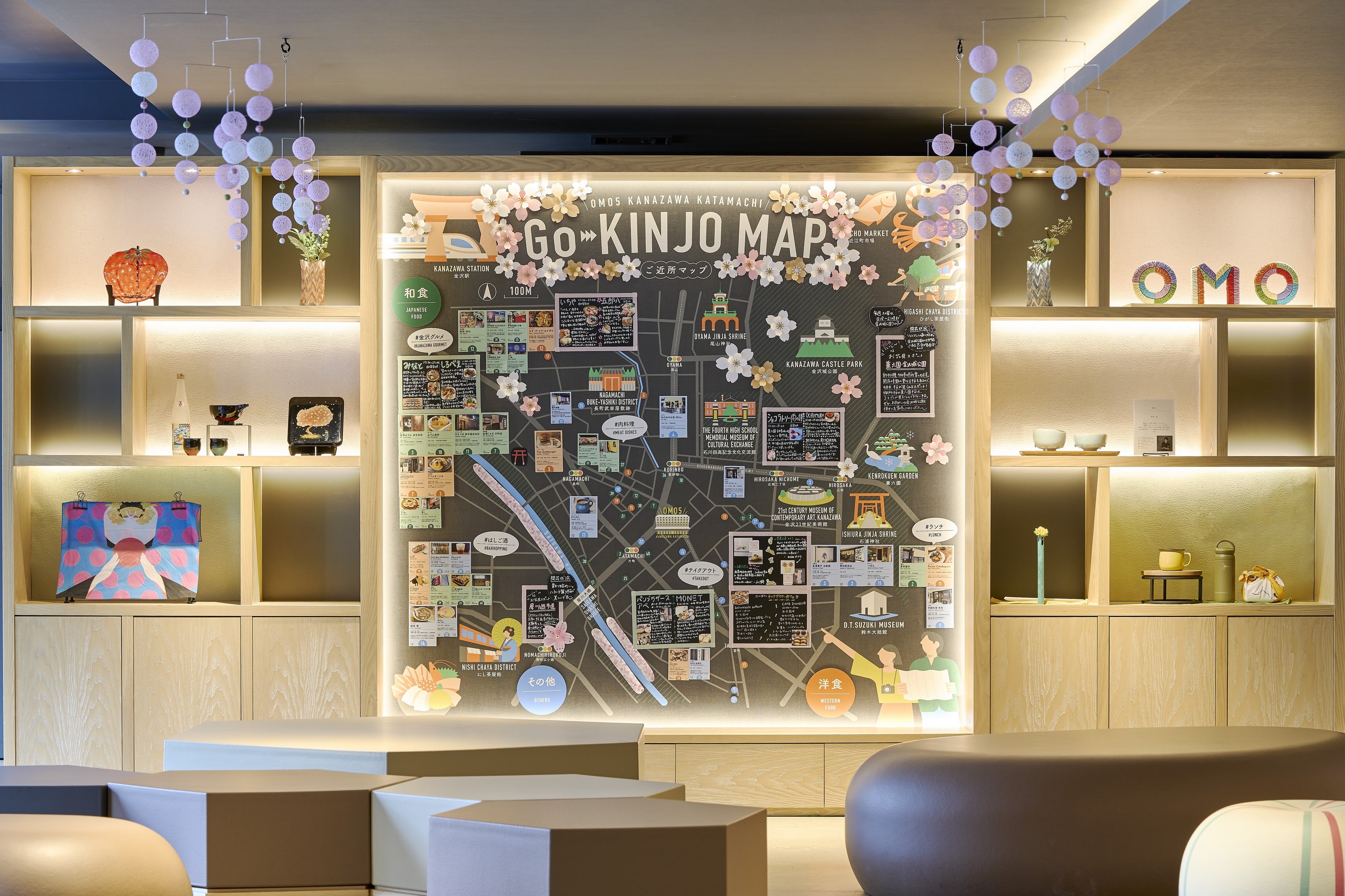 ゲストに余すことなく北陸旅を楽しんでいただけるよう、アーリーチェックインとレイトチェックアウトを設け、24時間滞在できるプランにしました。当ホテルの徒歩圏内には、兼六園や金沢21世紀美術館、金沢城などの観光施設に加え、寿司店、イタリアン、スイーツショップ、金沢の郷土料理を提供するお店など、幅広いジャンルの飲食店があります。「どこに行こうか迷ってしまう。」、「地元の人が通う場所に行きたい。」。そんな時におすすめのツールが「ご近所マップ」。金沢を愛する当ホテルのスタッフが実際に足を運んで集めた情報を掲載した地図を、1階のパブリックスペースに設置しています。また、当ホテルには、チェックイン前とチェックアウト後も利用できるセルフロッカーを備えているので、滞在中だけでなく、その前後の時間にも身軽に観光することができます。