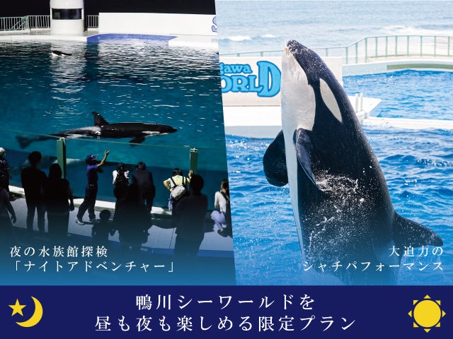 日中のシャチパフォーマンス&夜の水族館探検を楽しめる特別プランがバスの往復移動とセットになって登場!