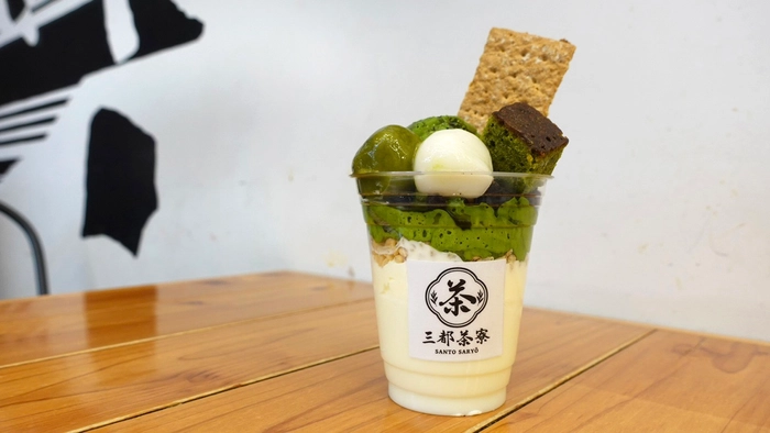 最新書籍の書きおろしコラムをイメージし、ミルクプリン・生クリーム・ライスクリスピーなど6層の素材に、抹茶白玉や抹茶ブラウニー、自家製抹茶アイスをトッピングした抹茶を満喫できる特別パフェです。