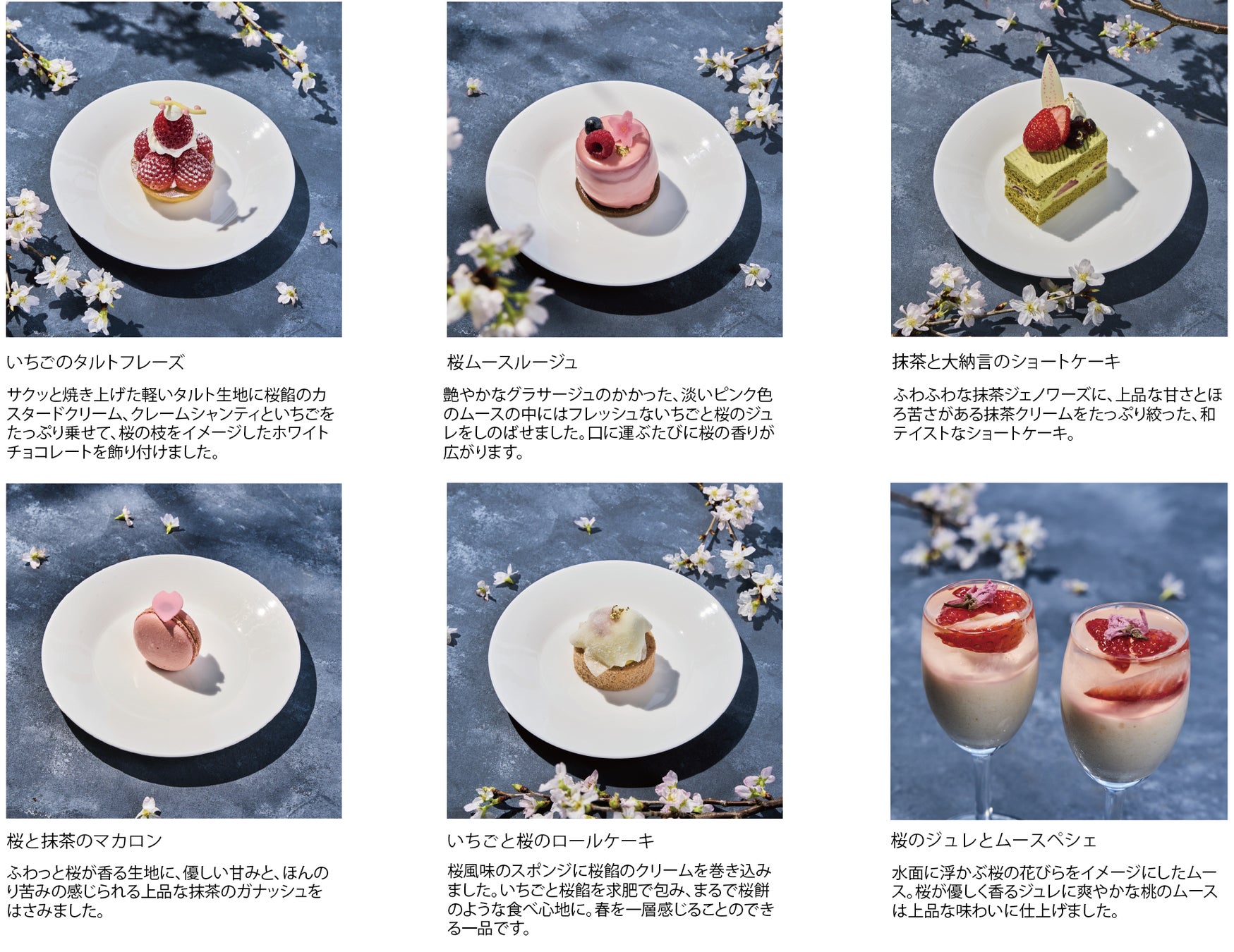 主役の国産いちごと抹茶を使用し“桜”をモチーフに、桜風味のクリームや餡をふんだんに用いたスイーツをご用意いたしました。