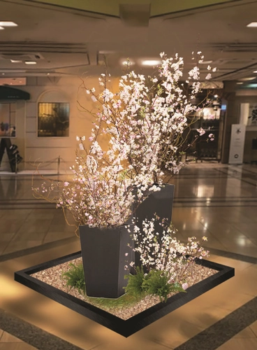 ホテルロビーを飾る華やかな桜のフラワーアートと、各レストランで楽しめる桜の花びらや花束を用いたシンプルで美しいテーブルデコレーション。お客様には、暖かく優雅な雰囲気の中で春の花見気分を存分にお楽しみいただけます。