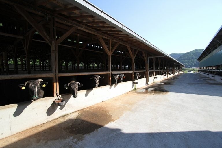 周囲を山々に囲まれ、加古川がゆるやかに流れる兵庫県西脇市の美しい風景に溶けこむ「川岸牧場」。清潔な牛舎の中では、常にクラシック音楽が流れ、ストレスを感じずにリラックスできる環境でのびのびと育てられた牛は、数々の品評会で優秀な成績を収め、その良質な脂の旨味ときめ細かな肉質から“奇跡の肉”とも呼ばれています。その“川岸牧場”から直送された厳選した神戸ビーフを、ディナータイム(¥33,000コース)にご堪能いただけます。また、元寿司職人の経歴を持つ髙木オーナー自慢の“黒毛和牛の炙り握り”(¥33,000コースは神戸ビーフを使用)をお楽しみいただけるほか、サシが美しい黒毛和牛を淡路島産の玉ねぎと焼き上げて、甘辛な特製だれをたっぷりと絡めて仕上げる「大栄」名物“黒毛和牛の焼きしゃぶ 淡路島産玉ねぎ”もご用意いたします。まずは和牛の旨味をそのまま味わったら、溶いた卵にサッとくぐらせてお楽しみください。