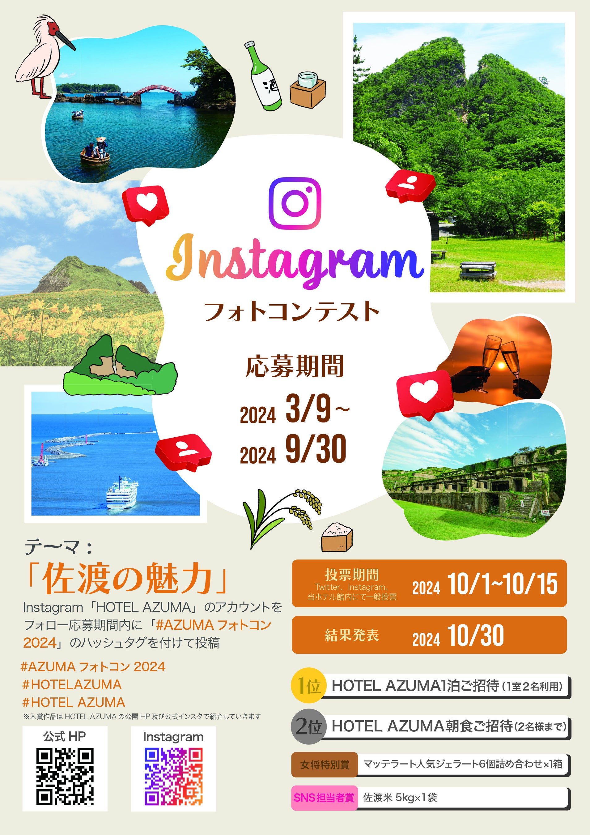 サンフロンティア不動産株式会社(本社:東京都千代田区、代表取締役社長:齋藤 清一)の連結子会社であるサンフロンティア佐渡株式会社が運営する「SADO RESORT HOTEL AZUMA」は、本日 3月9日(土)より「佐渡の魅力」をテーマに、Instagramフォトコンテストを開催いたします。