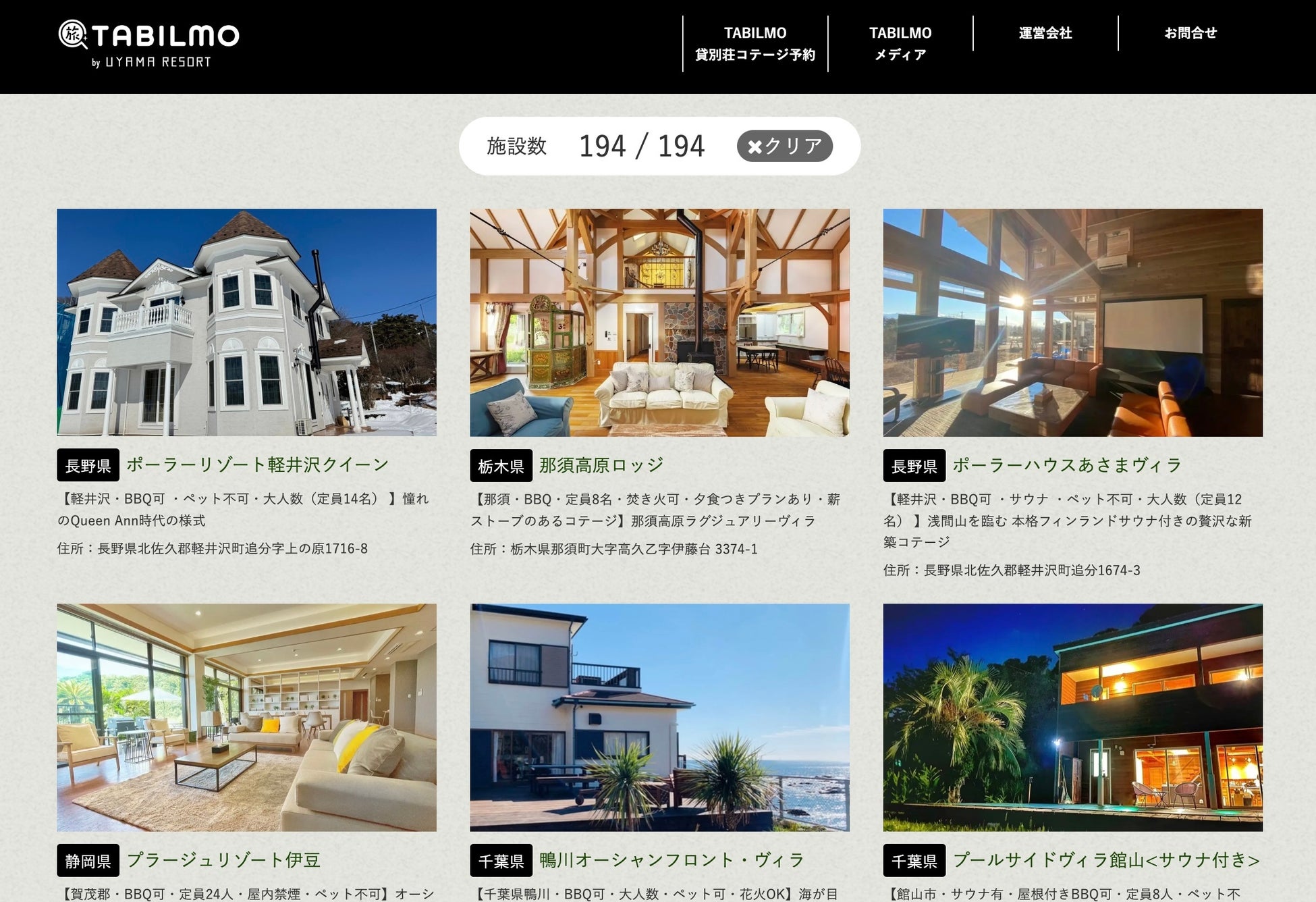 鵜山リゾートでは、年間700万アクセスを突破したオウンドメディア「TABILMO」を運営しており、オーナー様の貸別荘・コテージをTABILMOに掲載することで、安定的なご予約をいただいています。※OTAのみのサービス(完全成果報酬型)もございます。