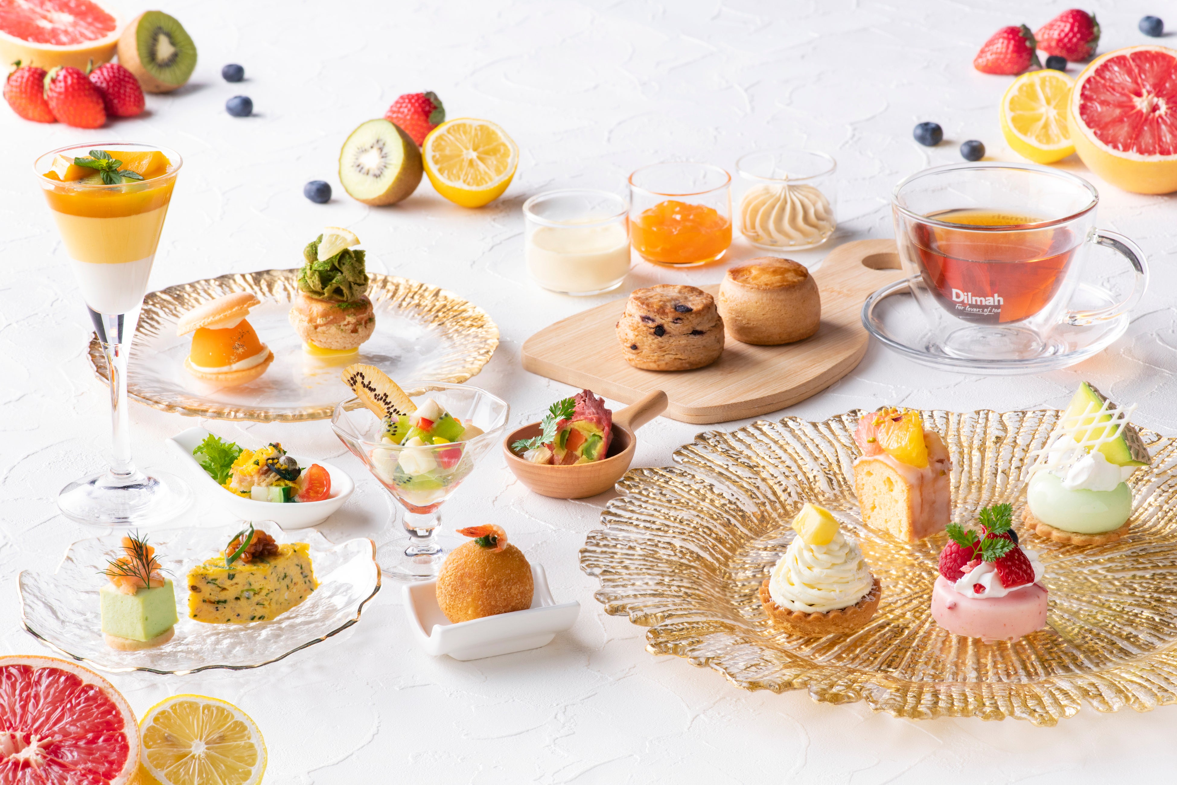 フルーツアフタヌーンティーでは、お客様にフルーツをより美味しく食べていただけるように、夏の初めに旬を迎える食材をふんだんに使ったメニューをご用意いたしました。デザートメニューでは、苺とライチ、マンゴーとココナッツなど王道の組み合わせを楽しむものから、抹茶とレモン、パイナップルとモンブラン、びわとバタークリームなど試行錯誤して作り上げたものまで、8種類のメニューが登場します。この機会にしか味わえないスイーツとフルーツの組み合わせを、ぜひお楽しみください。また、セイボリーには初夏の食材を贅沢に活用した6種類のメニューをラインナップ。彩り野菜とキウイフルーツの酸味、ベビーホタテのうま味のバランスが良いセビーチェや、香り良い桜えびと初夏のやわらかいアスパラガスで作ったリゾットのアランチーニ(ライスコロッケ)など、初夏のさわやかな味わいが堪能できるメニューをお届けします。さらに、季節のモクテルは、キウイとノンアルコールジン、トニックウォーターをあわせ、甘酸っぱくもすっきりとした味わいが初夏の訪れを思わせる爽やかなドリンクに仕上げました(※フルーツアフタヌーンティーとは別料金となります)。