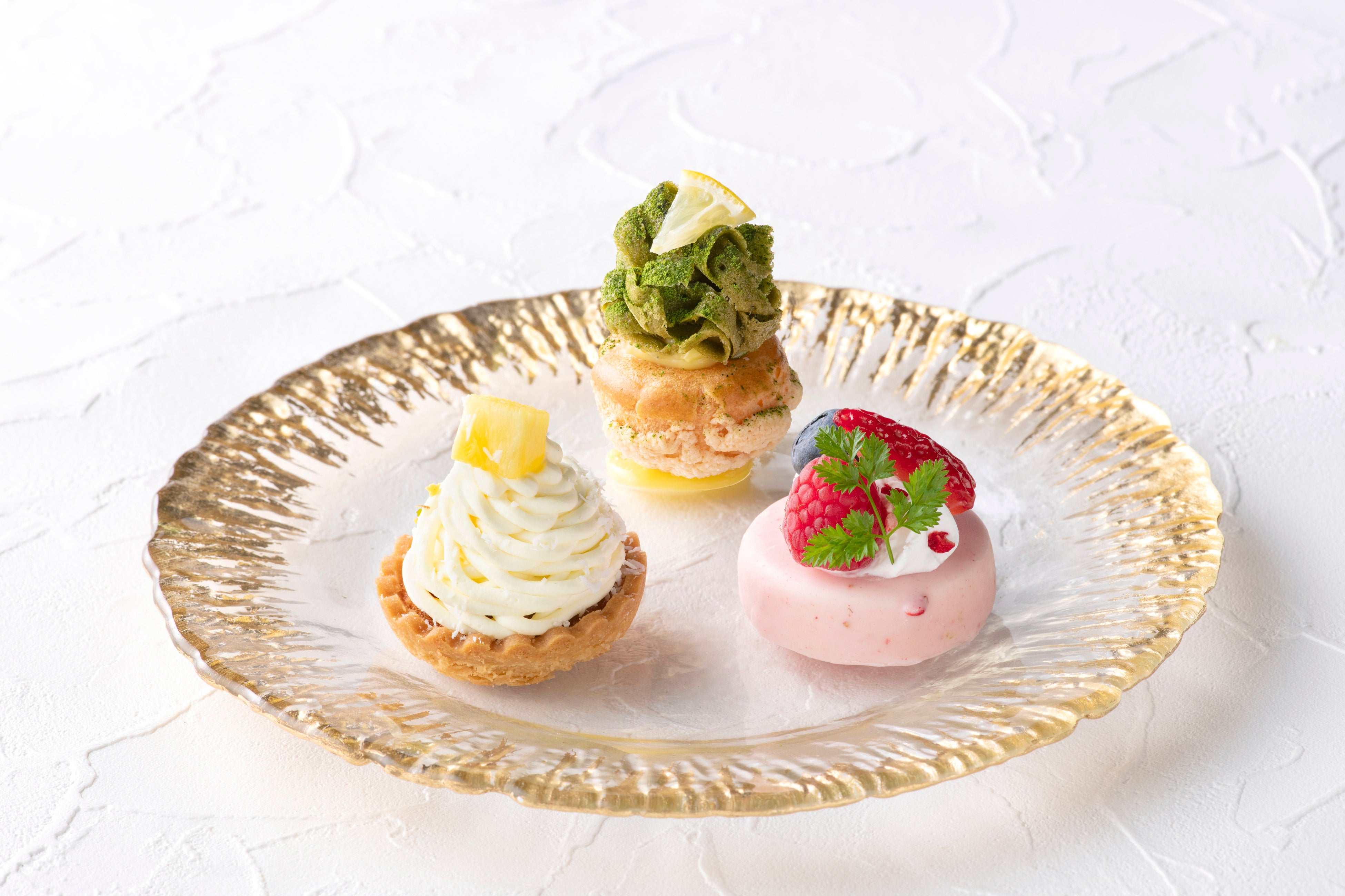 「抹茶とレモンのクッキーシュー」(写真プレート中央)