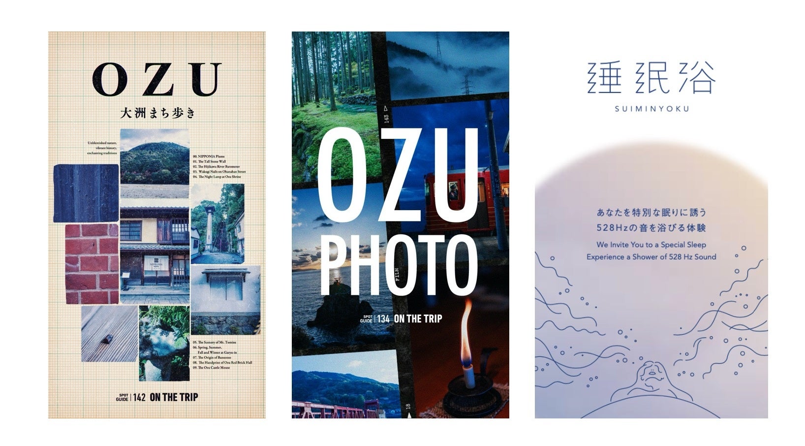 分散型ホテル「NIPPONIA HOTEL 大洲城下町」は、街中に部屋が点在しています。ここに宿泊するお客様は必然的にまち歩きをするのですが、その体験を歴史や文化を学びながら歩けるようなガイドを制作しました。それが、大洲の歴史を知る「大洲まち歩き」ガイド。さらに、連泊するお客様や、周遊をしたい方向けに、大洲から伊予までのフォトジェニックを探す「OZU PHOTO」のガイドを制作。これで観光の体験が変わっていきます。さらに、部屋で安らぎ心地よい睡眠に促すための入眠体験である「睡眠浴」を制作しました。