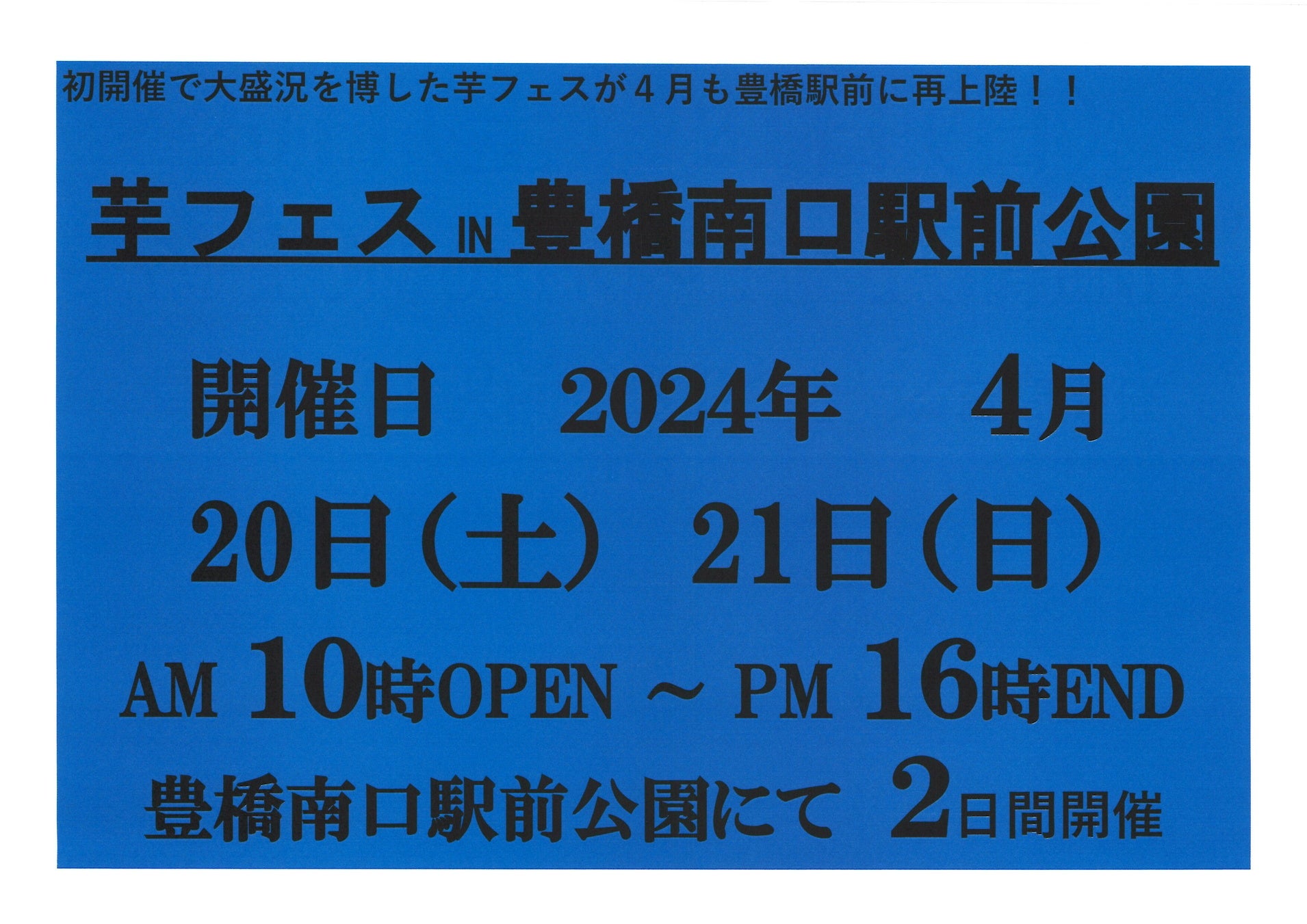 2024年3月豊橋駅に大旋風を巻き起こしたあの芋フェスが2024年4月20-21日に再び豊橋駅南口駅前広場に帰ってる。