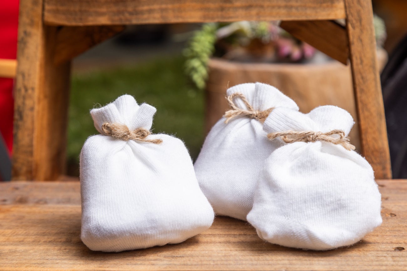 THE LIVING GARDENの振る舞いで使用した抽出後のコーヒー粉を使って、消臭剤を作ります。消臭剤のカバーは、使用しなくなった部屋着などを使用します。