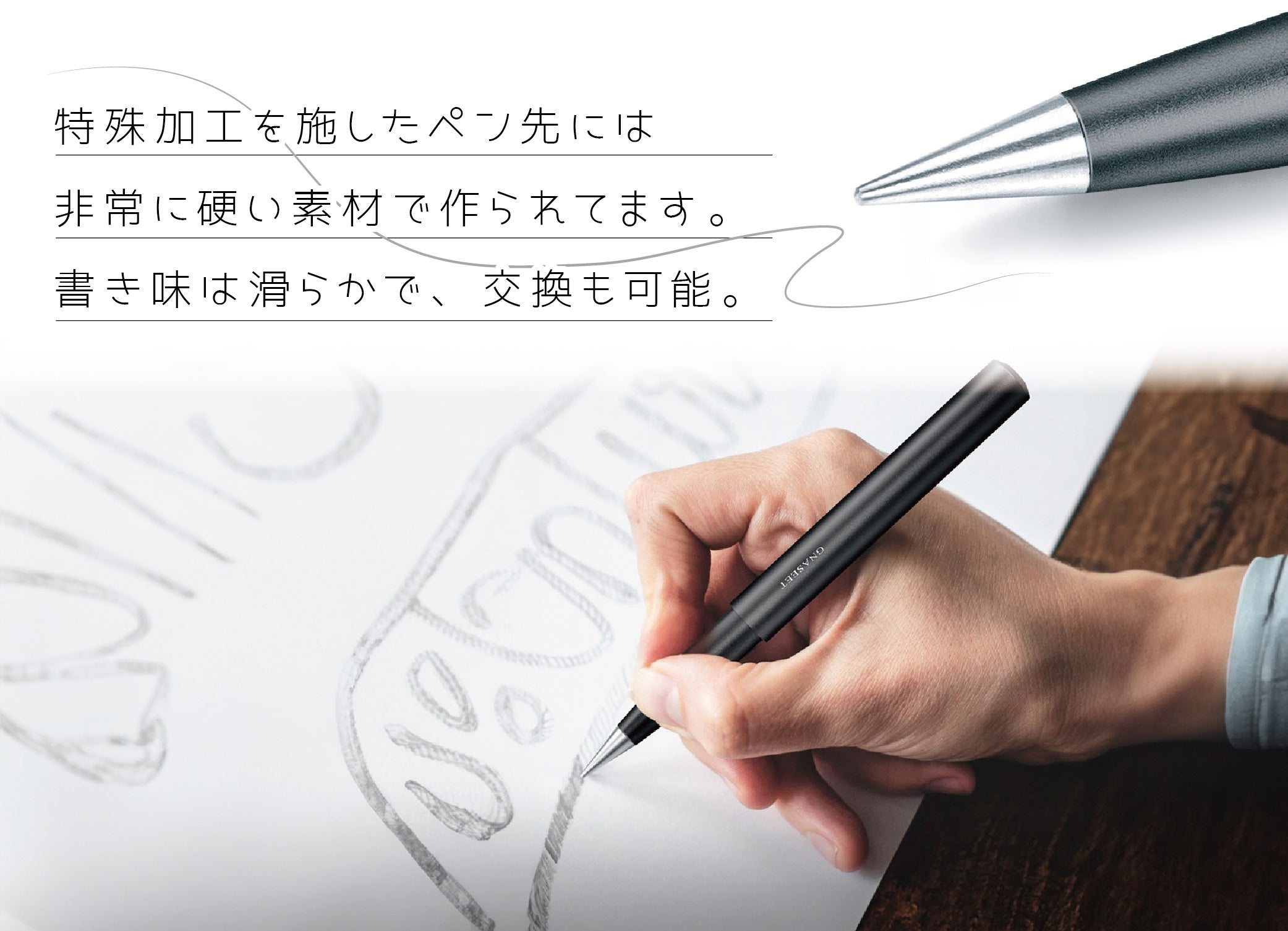 また、インクレスデザインと丈夫で高品質な素材の使用により、従来のペンよりも経年劣化しづらいため、長い期間の使用が可能です。