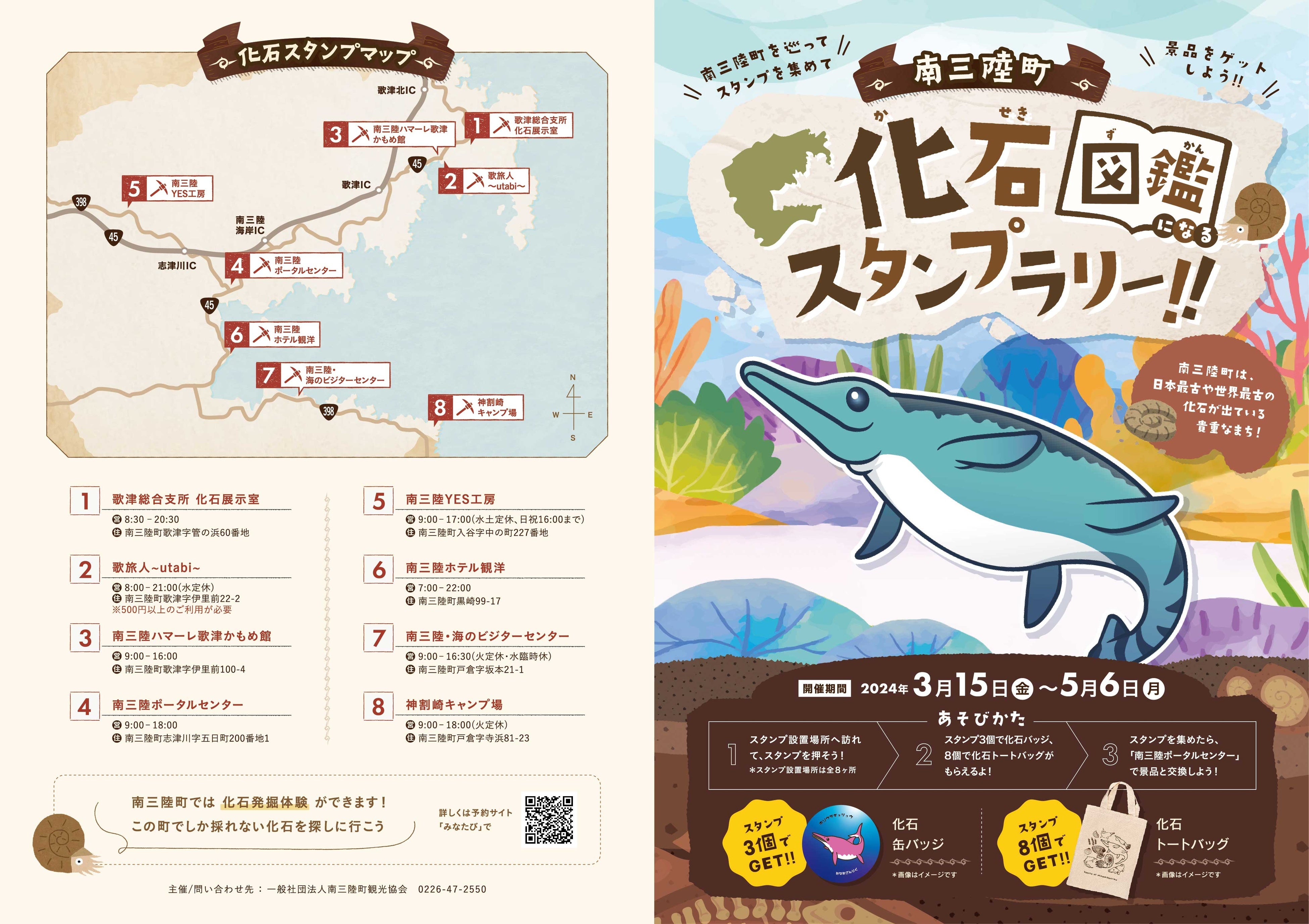 親子で楽しめる「南三陸町化石スタンプラリー」を2024年3月15日(金)から5月6日(月)まで開催します。本イベントは、一般社団法人南三陸町観光協会所属の化石に詳しい地域おこし協力隊が企画しました。