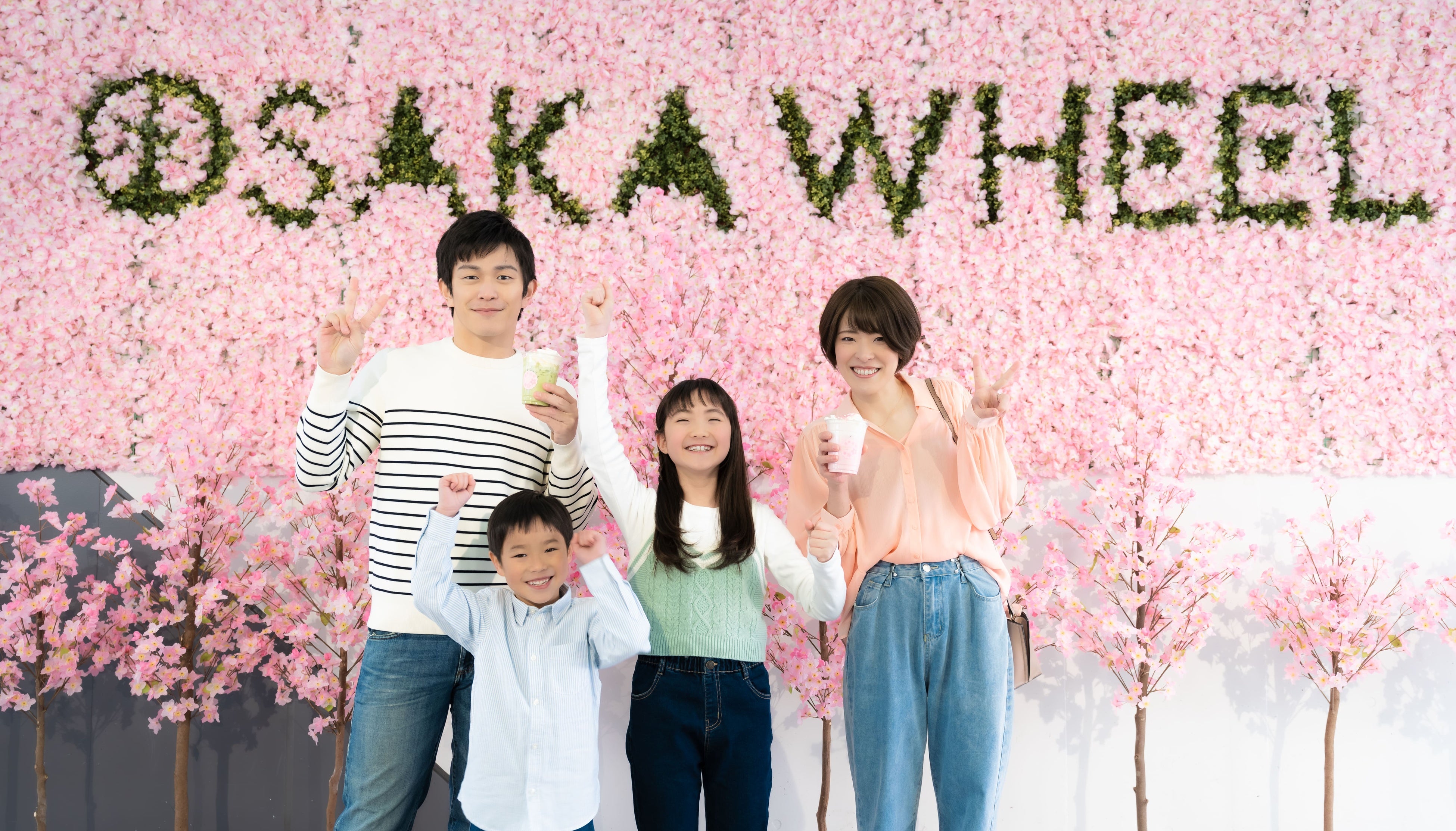 ③観覧車の入口に設置している巨大な”桜の壁面”と最大170センチ超えの”桜のオブジェ”は超映えスポットです