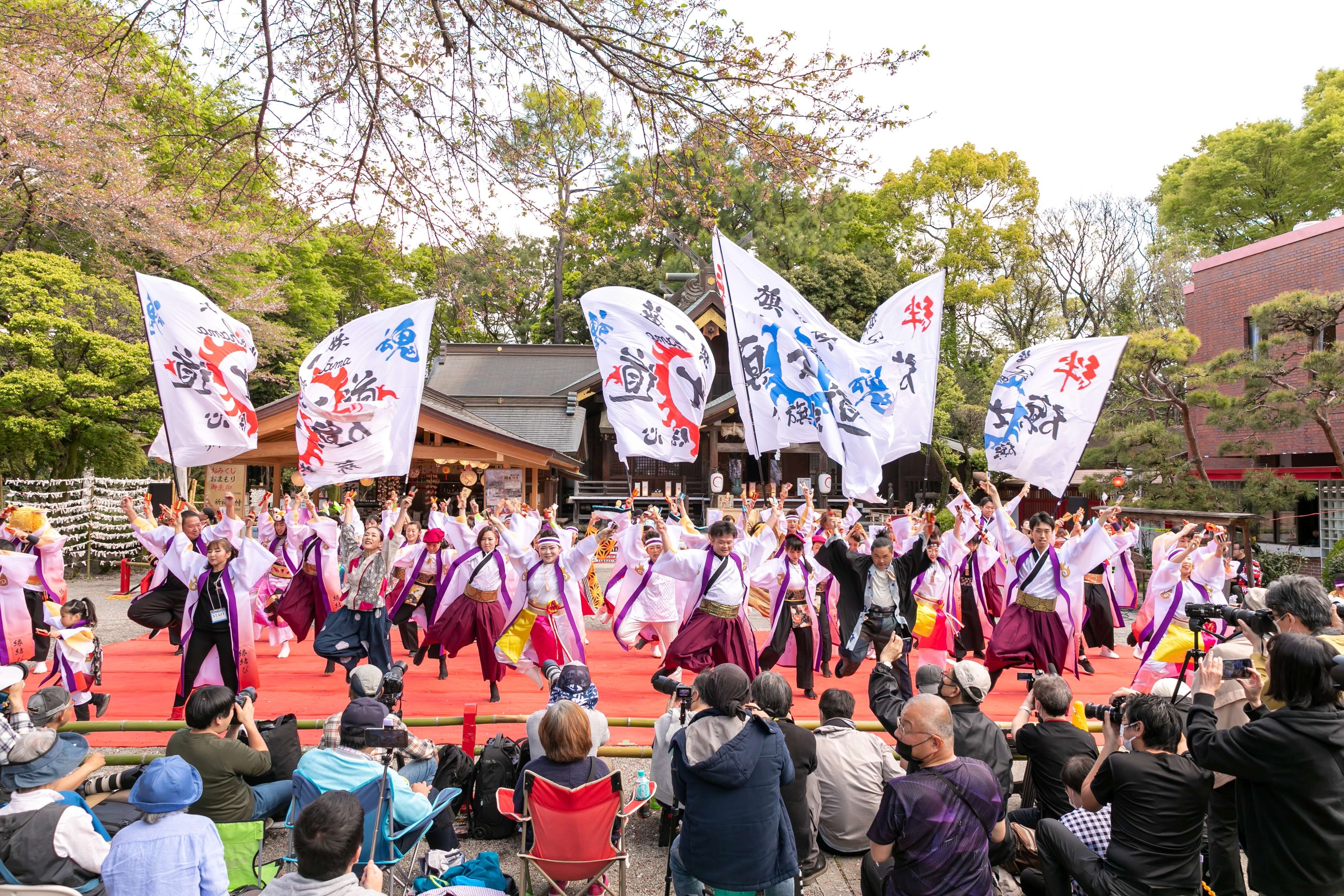 さらに、4月13日(土)、14日(日)には、境内の満開の桜が舞い散る中でよさこいを奉納する「第2回よさこいご縁まつり」が開催されます。令和5年より、「よさこいご縁まつり」としてリニューアルいたしました。50チーム1000名以上が集まり、本格的なよさこい奉納のコンテストを観覧できる毎年恒例の人気行事です。