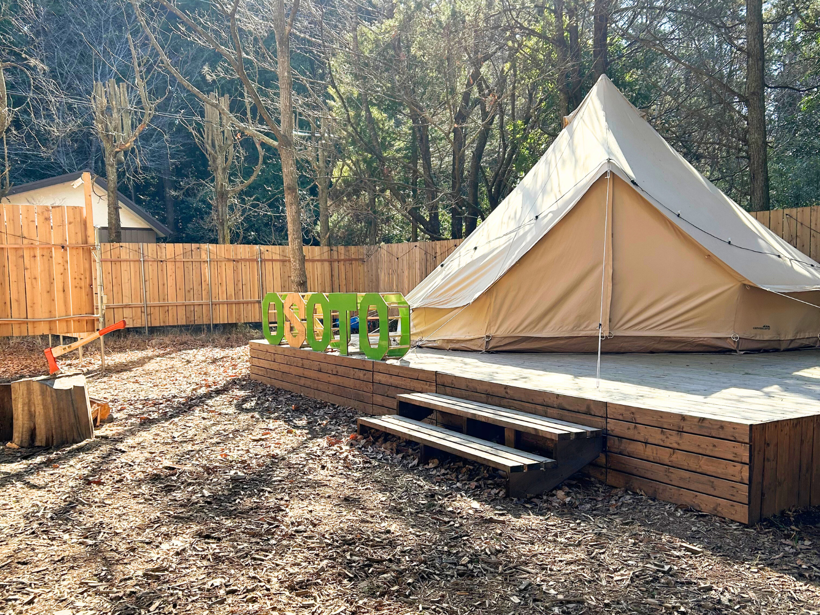 Osoto Sauna & Glampingは、都会の喧騒から離れてプライベートな空間で思いっきりアウトドアを楽しみたい方に向けた、500㎡の敷地面積を誇る、森の中にポツンとある広々としたプライベートアウトドア空間です。