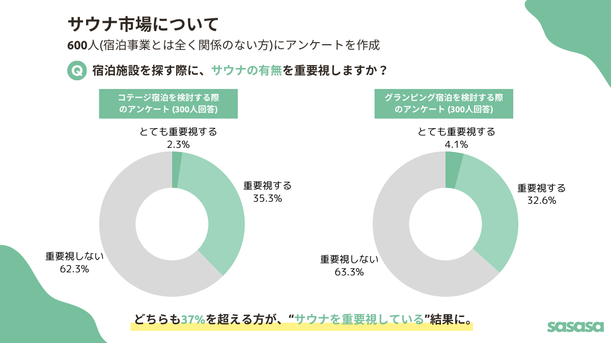 -宿泊施設のサウナ導入率は、まだ10%ほど。しかし宿泊者は、サウナの有無を重要視している。-