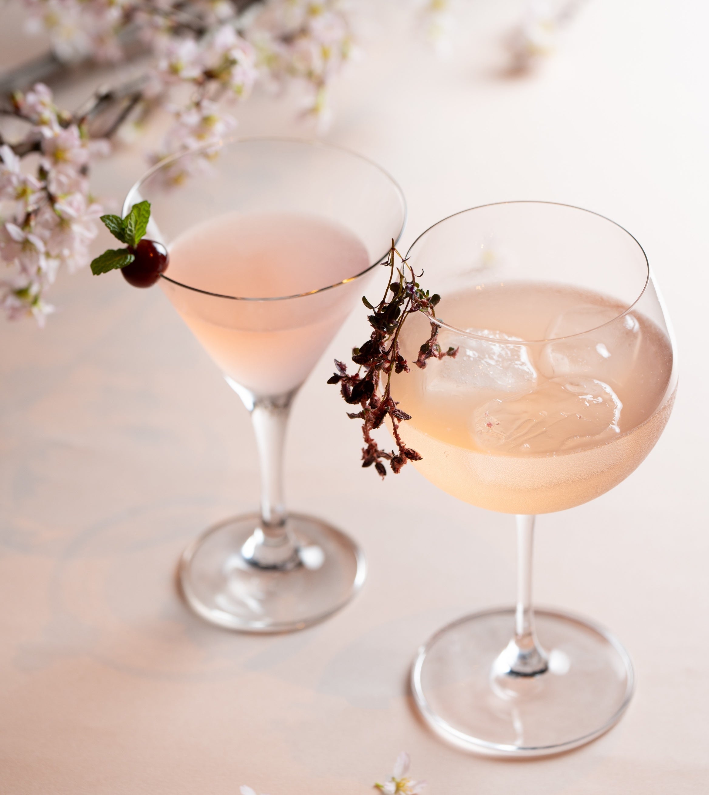 Touzan バーでは、桜の花や葉を使ったジャパニーズクラフトジンが香るカクテル「八坂コリンズ」と、桜餅のテイストをイメージしてズブロッカの芳香を生かした「サクラドロップ」を期間限定でご用意します。バーテンダーが丁寧に一杯ずつお作りする優しい味わいのカクテルで、ピンクに色づく春をお楽しみください。