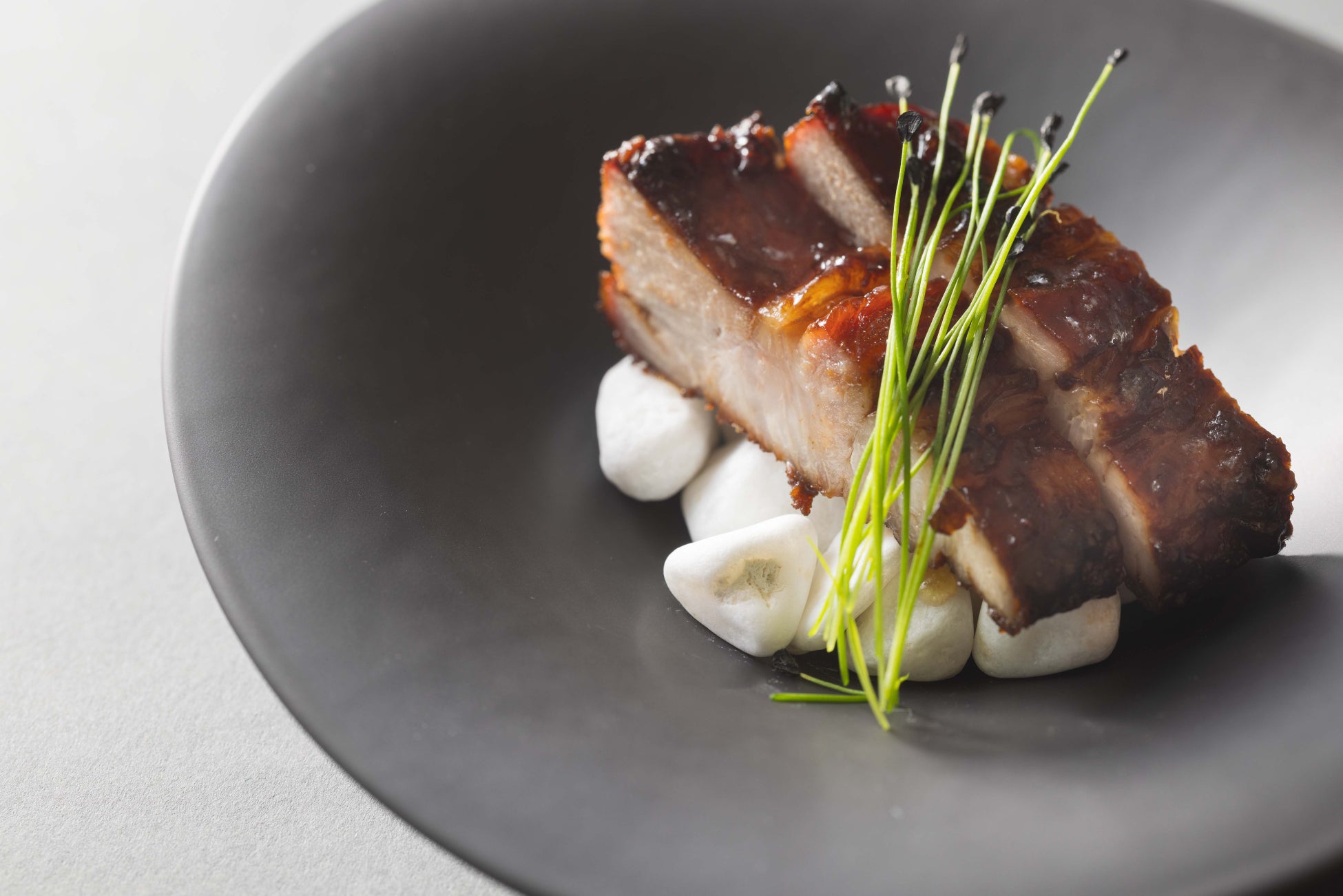 アワビや毛蟹、真ダラなど、函館の朝市で出会った旬の鮮魚は、現地の美味がぎっしり詰まった目にも鮮やかなテリーヌに。噴火湾産の肉厚のホタテ貝は、函館名産の真昆布を有機肥料に使った極上のグリーンアスパラガス “海の神〟とあわせ、函館の海と山の恵みを感じる一皿に仕上げました。北海道産の高品質なブランド肉「ひこま豚」をじっくり丁寧に焼き上げたチャーシューは、七輪で香ばしさをプラスしてご提供いたします。