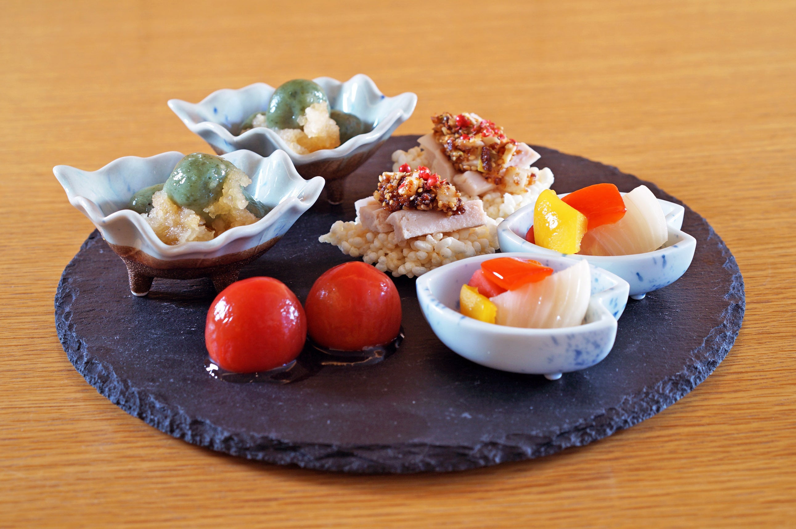 狭山茶を使い新緑を感じるピクルスでお口直しを。