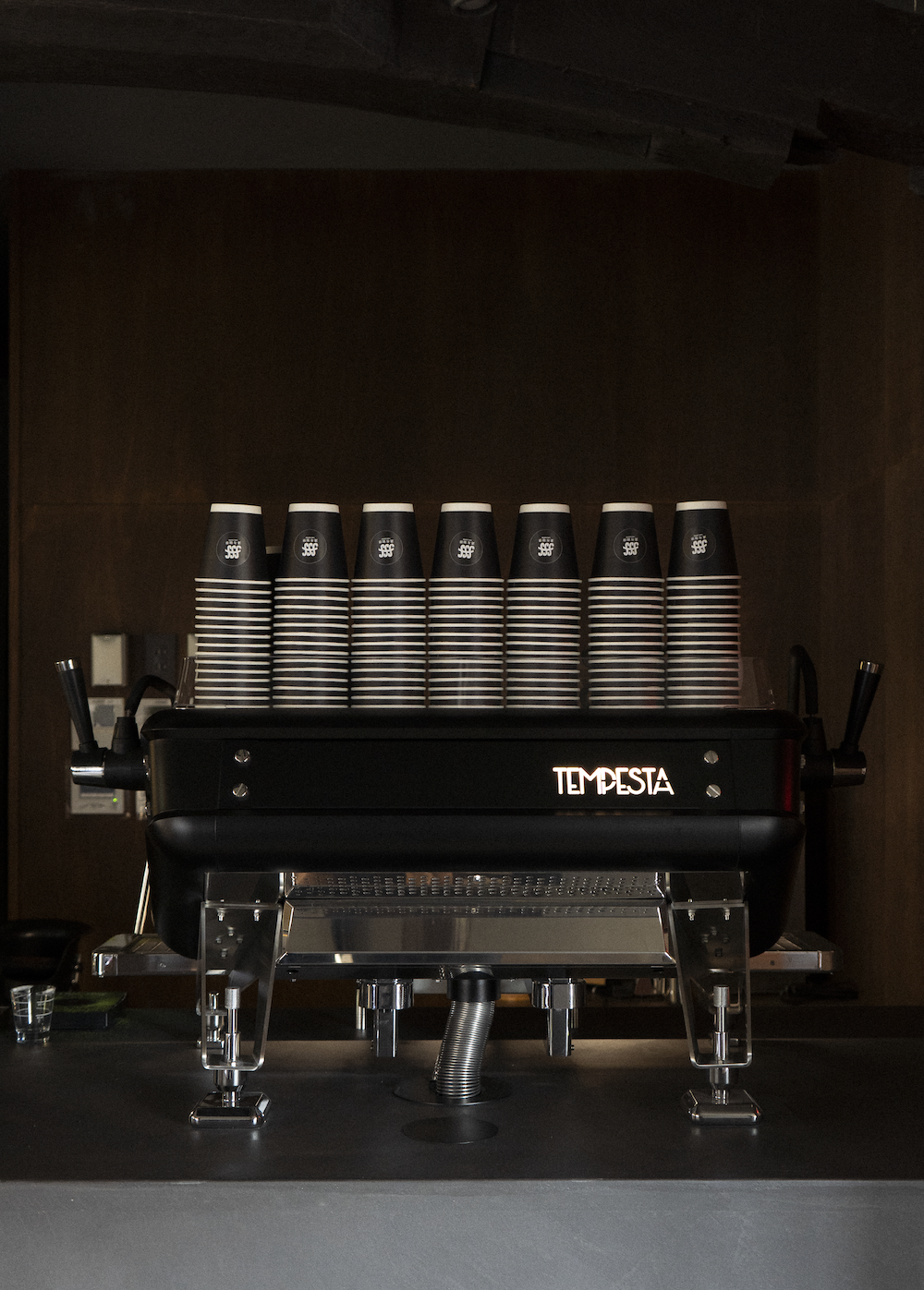 エスプレッソマシンはTEMPESTA [2gr.]。「BARISTA ATTITUDE」のコンセプト通り、ユーザーに寄り添うマシンとして設計されており、高品質なエスプレッソの抽出が再現できます。店舗のカラーにも合ったデザインで湯布珈琲のシンボルにもなるようなマシンです。