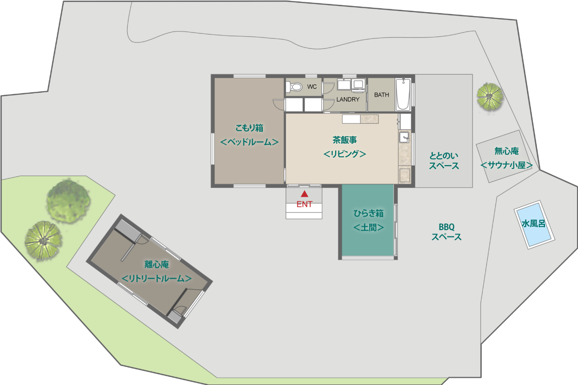 リトリートヴィラは5つの空間から構成されます。