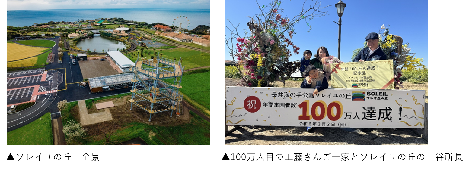 横須賀市長井4丁目にある「長井海の手公園(ソレイユの丘)」は、令和6年3月3日(日)に、年間累計来園者数が100万人を突破し、昨年4月のリニューアルオープン時に掲げた目標を達成しました。