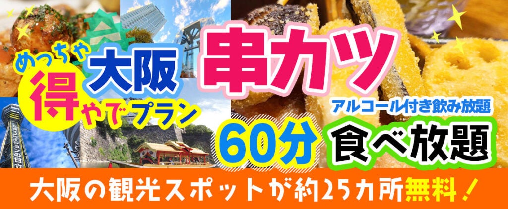 大阪楽遊パス1日券付き+串カツ60分食べ放題+アルコール付60分飲み放題