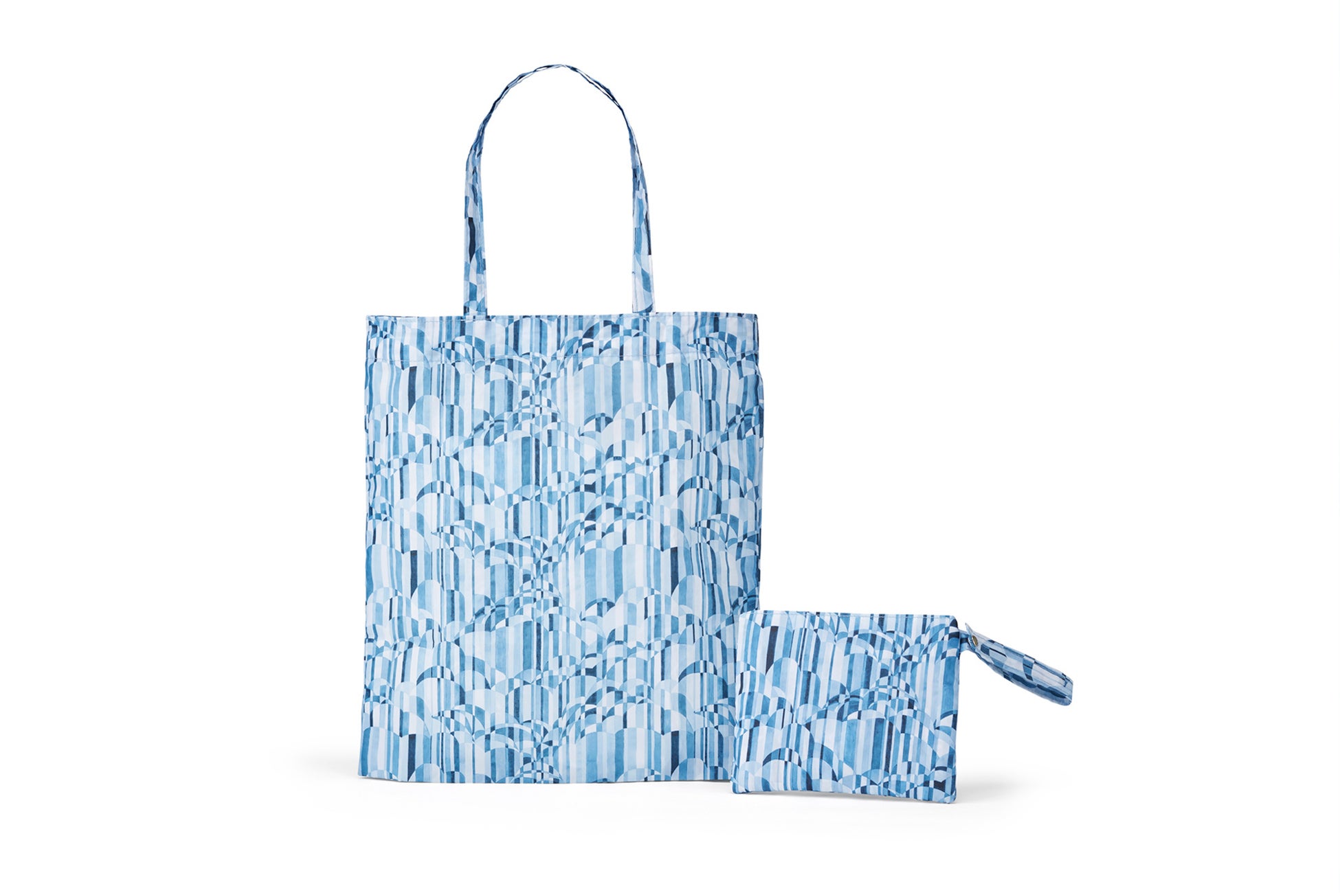 コラボレーションモデルの内装とポケッタブルトートに、点と線模様製作所の模様をあしらいました。