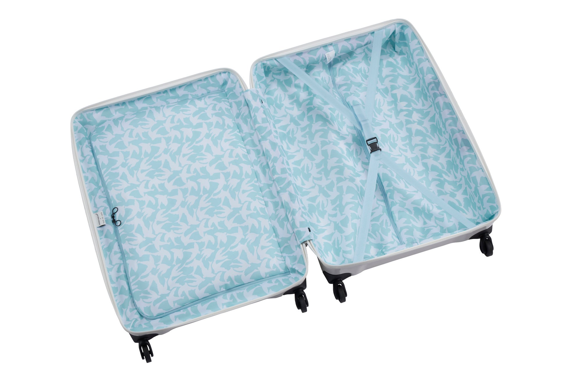内装と付属のポケッタブルトートに〈ピース〉模様を採用しました。軽やかに羽ばたく鳥を描いた模様が、「トリアクシス」の軽さとリンクします。
