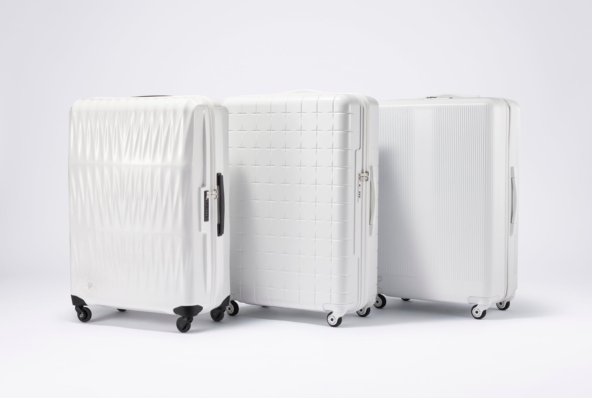 「トリアクシス」は機内持込サイズ2.1㎏を実現した軽量スーツケース。水よりも比重の軽いポリプロピレン樹脂をボディに採用し、強度を付与するリブデザイン(ボディ表面の凹凸)を三軸方向に張り巡らすことで、軽さと耐久性を両立させています。